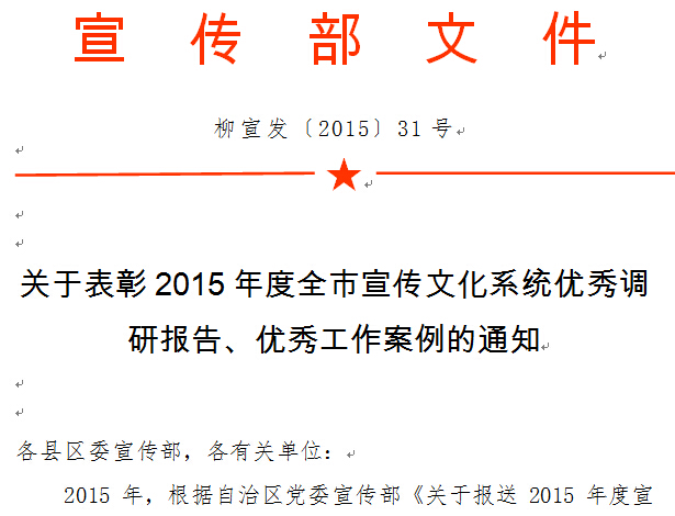 喜讯:我院一课题入选2015年度柳州市宣传文化系统优秀工作案例
