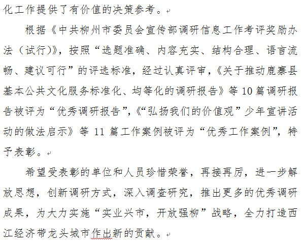 此次表彰,共有10篇调研报告被评为“优秀调研报告”、 11篇工作案例被评为“优秀工作案例”。