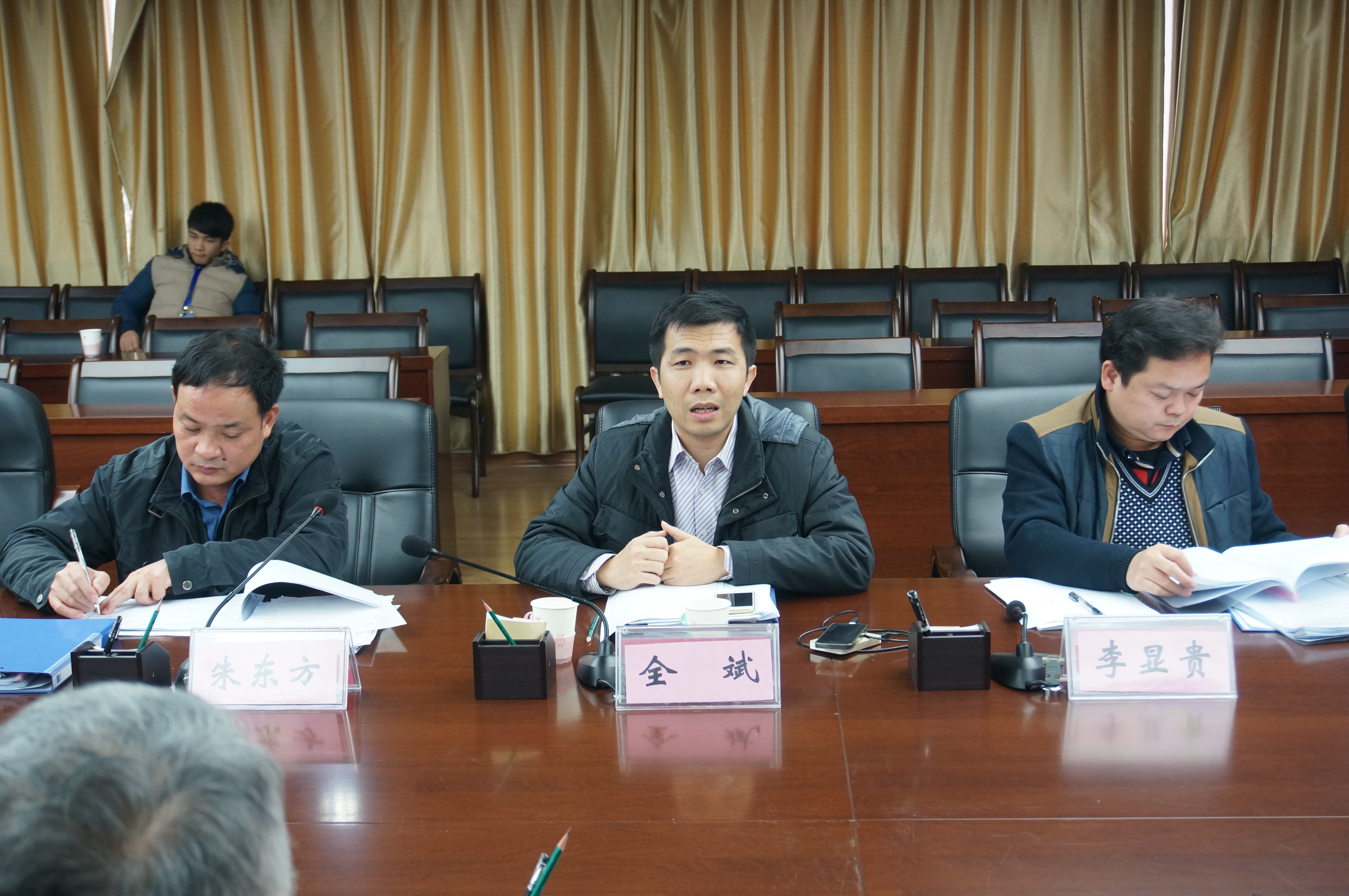 自治区教育厅专家组莅临我院进行核查工作。(从左至右:朱东方、全斌、李显贵)