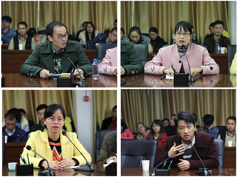 学生工作处处长唐冬雷汇报了十年来辅导员工作的一些基本情况。我院辅导员共63名,党员占到92.1%,中级职称20.6%,研究生22.2%,平均年龄30岁。陈波、廖美暖、贾洪峰、蓝杜骞等老师就是从辅导员岗位走上行政岗位的代表。辅导员提升空间很大,但队伍缺乏稳定性;所获各种荣誉可谓硕果累累;围绕辅导员开展的工作要求更高,考核更严格。辅导员通过各级种类繁多的培训来开展学术和课题研究,以及通过各种竞赛、各级评先、挂职(在职)进修等方式来提高综合素质和职业能力渐成日常。