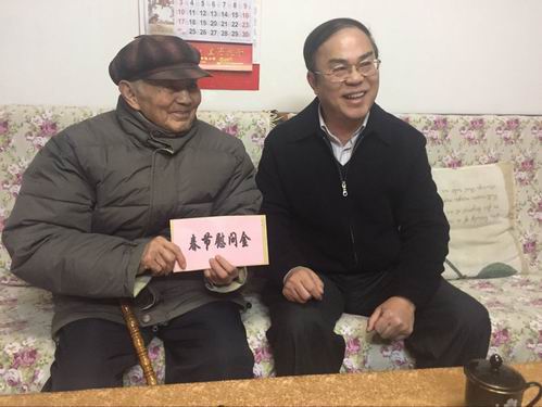 新闻网消息(通讯员/组织部 贾洪峰 摄影/党(院)办 赵萃、黄海燕,宣传部 崔智慧、古志华,工会 胡春雷,质量办 陈波)为弘扬中华民族“尊老敬贤”的传统美德,发扬我院关心爱护老党员、老干部以及关怀困难、重病党员干部的光荣传统,让广大离退休教职工以及重病教职工在寒冬中快快乐乐度过一个祥和的春节,学院领导与党(院)办、宣传部(统战部)、工会等部门人员组成七个慰问小组,于1月22日至27日期间,分别走访了学院部分离退休老党员、老干部以及重病教职工,为他们送去关怀慰问和新春祝福,并向他们送上慰问品及慰问金,将学院的温暖送到他们的心坎上。