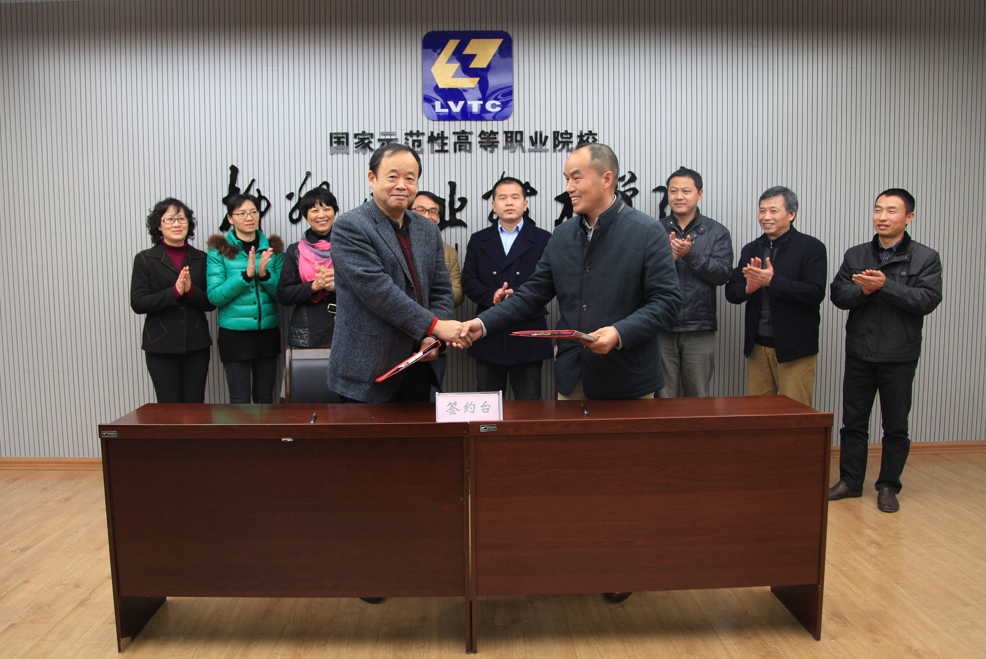 在校企双方参会人员的见证下,双方领导共同签订了《校企合作专业共建协议》。