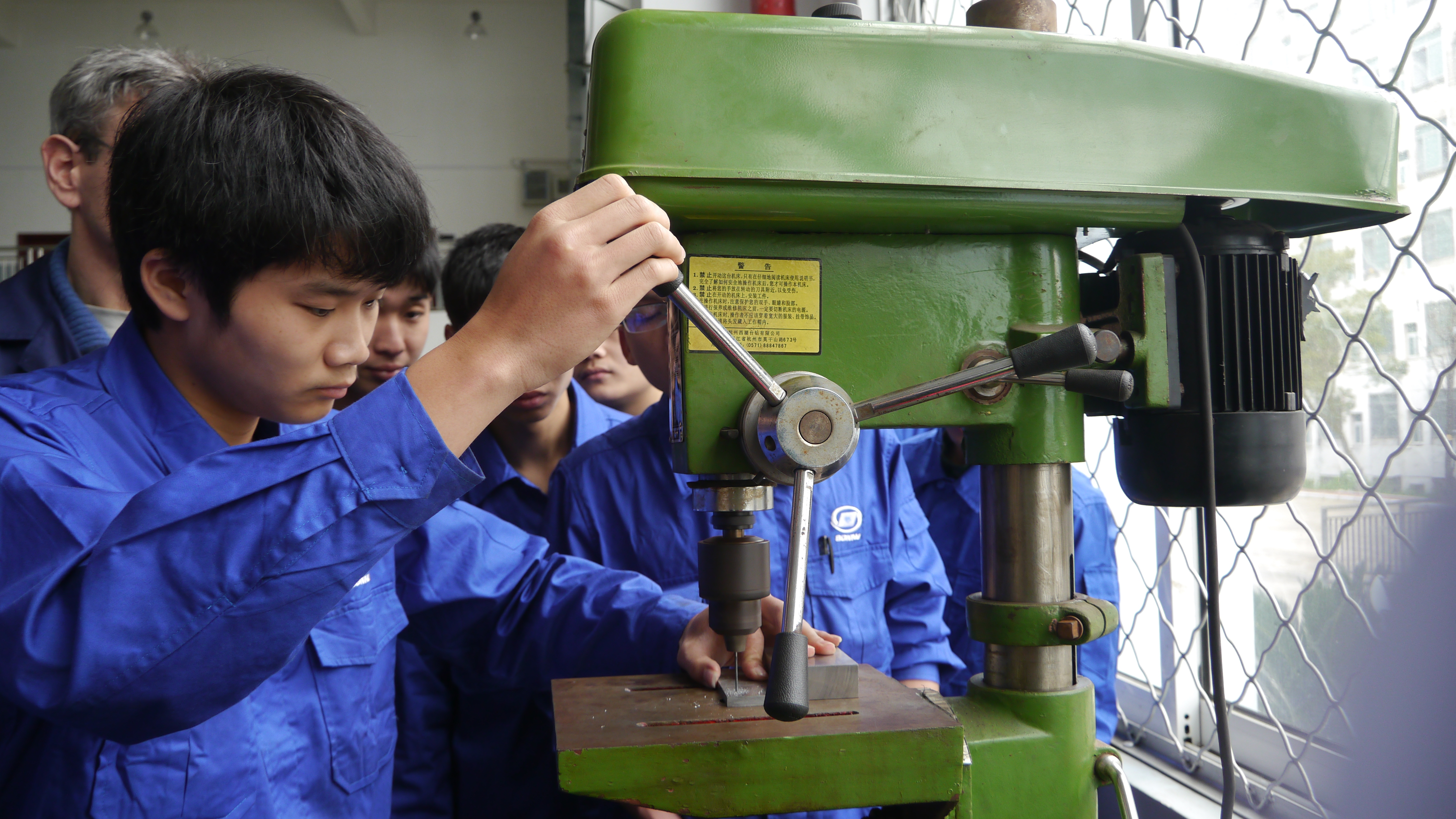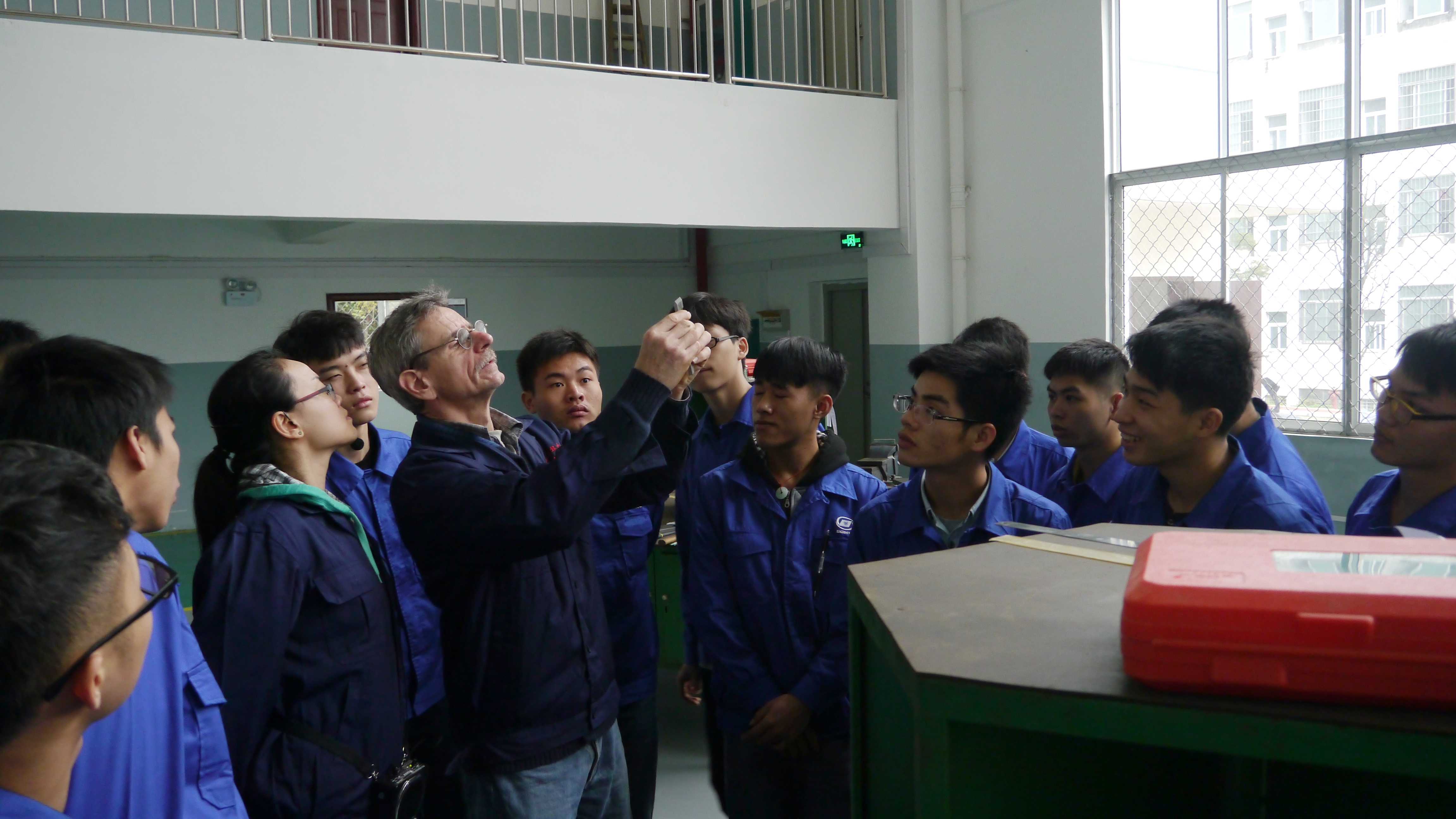5月9日下午,在新实训楼,学生们正三三两两地在机床前操作,恰逢廖毅刚刚完成了一套手虎钳,得到了德国大师约瑟夫的好评:“如果按百分制,这套器械应该得到95分!”后来在项目完成时的总结表彰会上,廖毅获得了“任务完成最快奖”。
