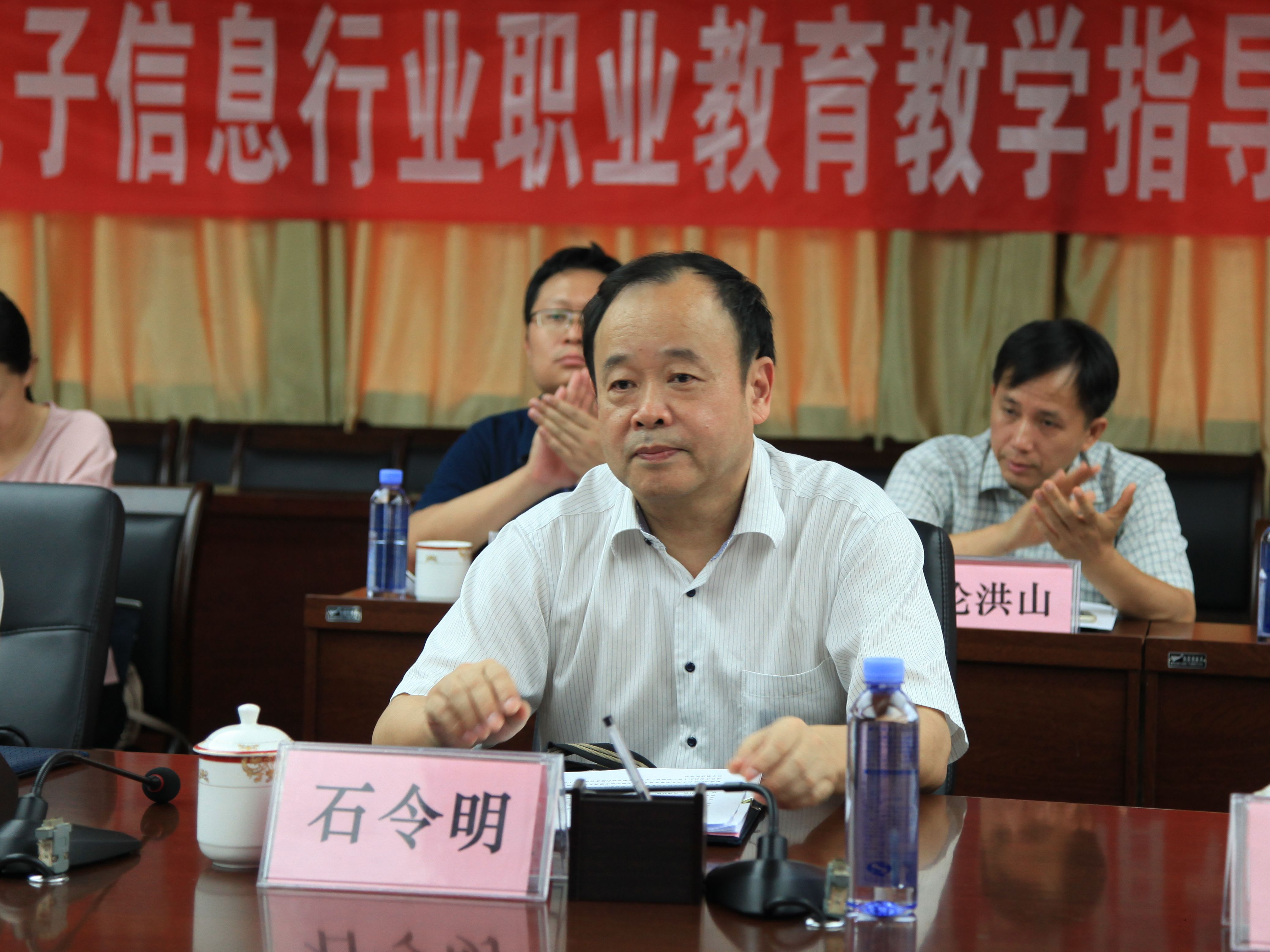 首先,校长石令明代表学校致欢迎辞,他说:成立广西电子信息行指委,对实现产业和专业无缝对接,推动职业教育教学改革创新,具有十分重要的意义。我校作为广西电子信息行指委秘书处单位,将大力支持行指委工作,为行指委工作提供必要的工作条件。在区教育厅的领导下,在广西工业和信息化委员会的指导下,携手各委员单位,以广西电子信息产业发展为纽带,为我区的职教事业、电子信息产业和经济社会发展做出更大的贡献。