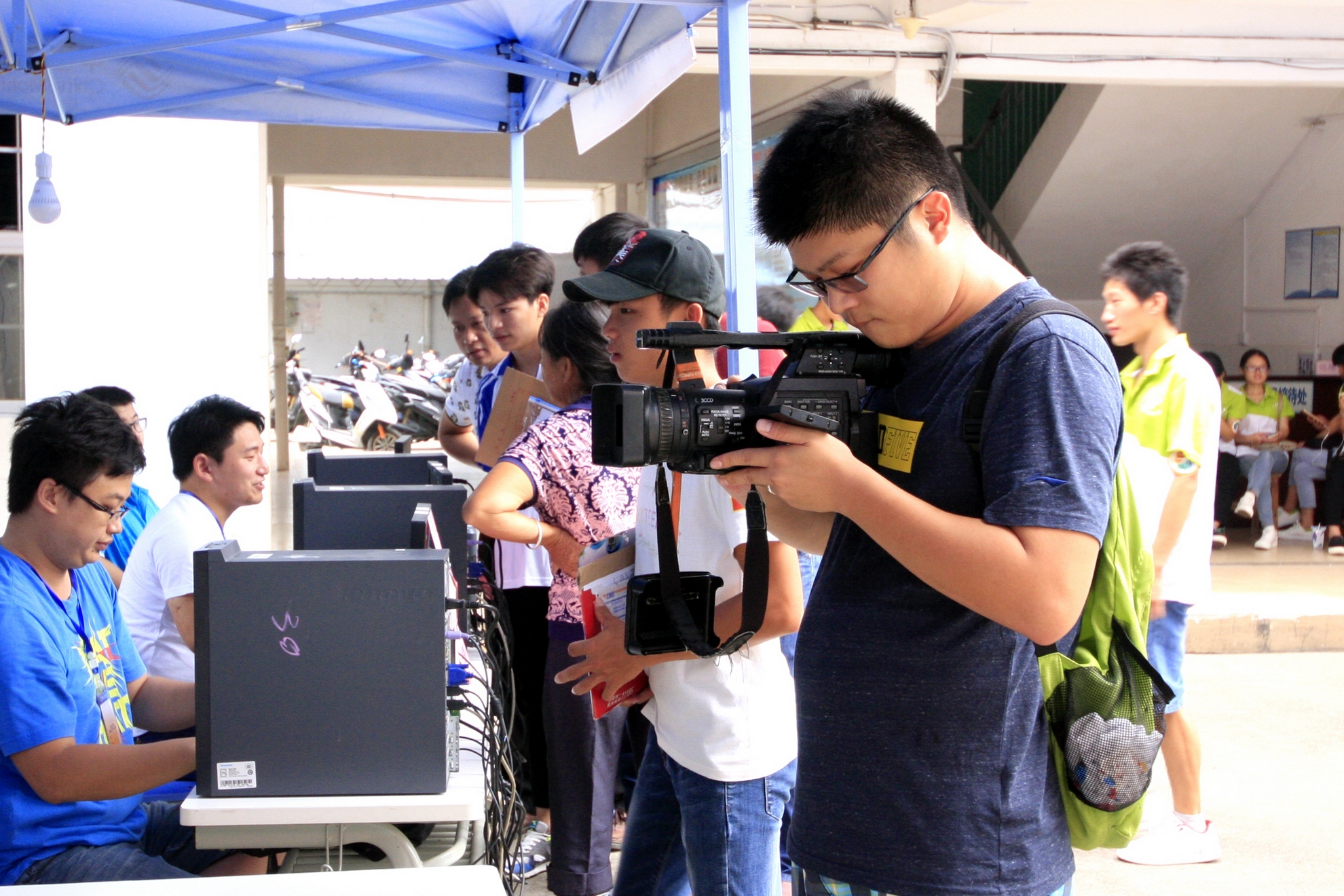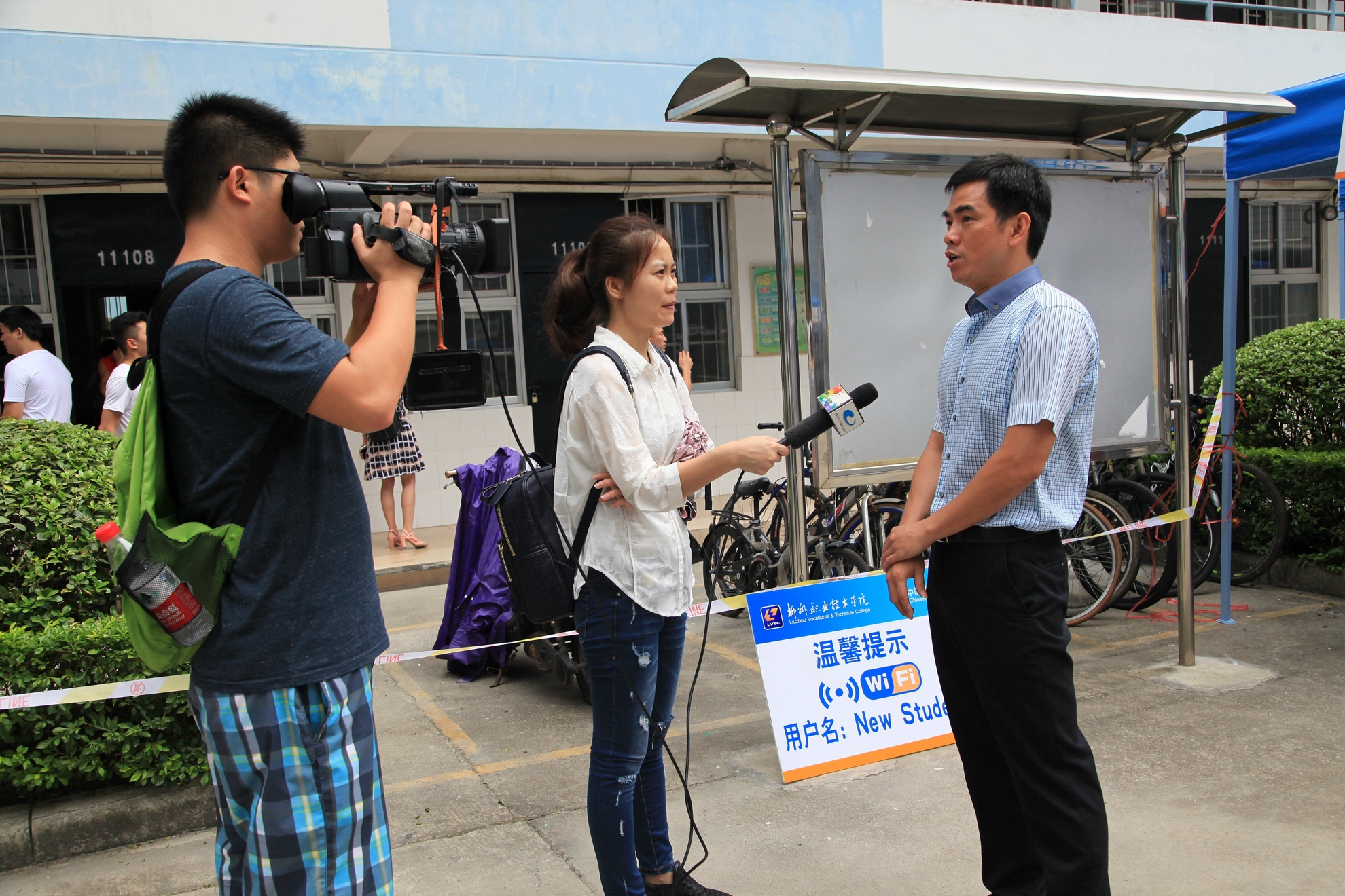 除了采访我校今年新生报到的情况外,9月9日上午,柳州电视台记者戴欣和吴旋关注的焦点在一位长相清秀的瘦高个小伙子身上,而这位小伙子所属的民族是一个非常少见的民族:穿青人。——或许,这会是第57个少数民族也说不定。