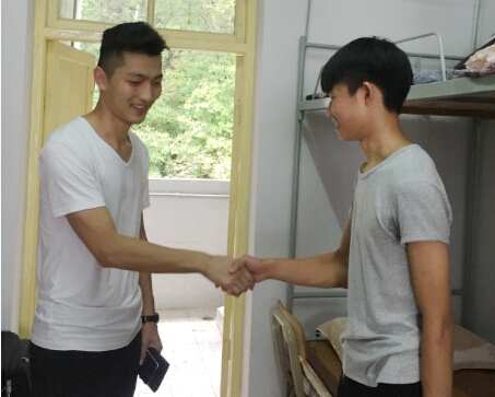 正说着话呢,一个高高帅帅的、有点韩星范的舍友李文浩(来自山西太原)走了进来,两人握手、寒喧、打招呼……一段友谊将陪伴他们三年的美好光阴!