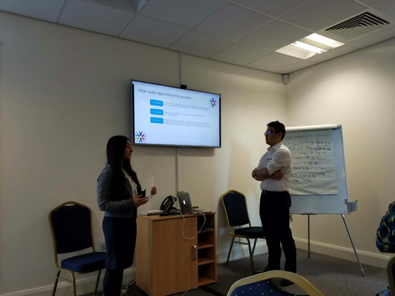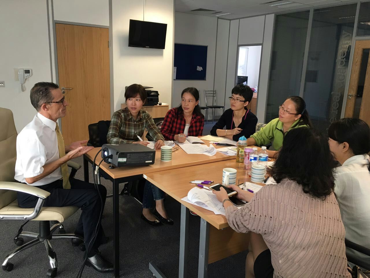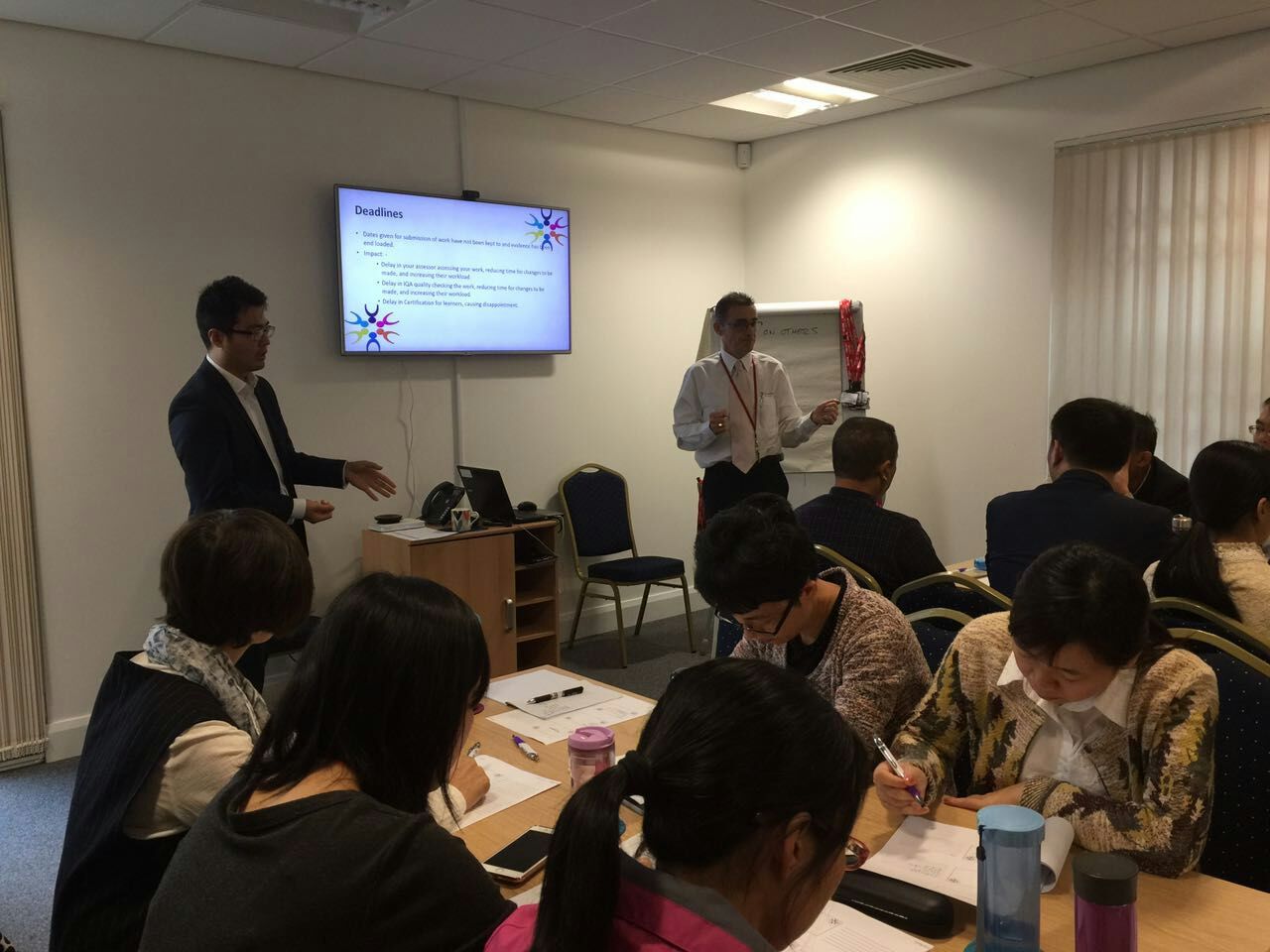 培训第一天,ALEX作为指导整个柳州团整整一年的学徒制培训师,积极地把英方内审员(IQA)对所有评估师半年以来的重点工作NVQ的工作评价反馈给大家。他毫不吝啬的溢美之词让第一次完成NVQ如此大规模测评的评估师们松了一口气,每一位评估师都为自己努力一年取得的成绩感到欣慰。而之后,ALEX所反馈的IQA发现的细节问题,又再次让评估师们绷紧了神经。英国本土学徒制工作人员之严谨细致非常值得学习。