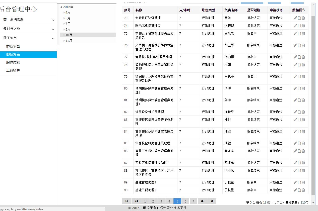 我校自主开发的“勤工助学管理系统”