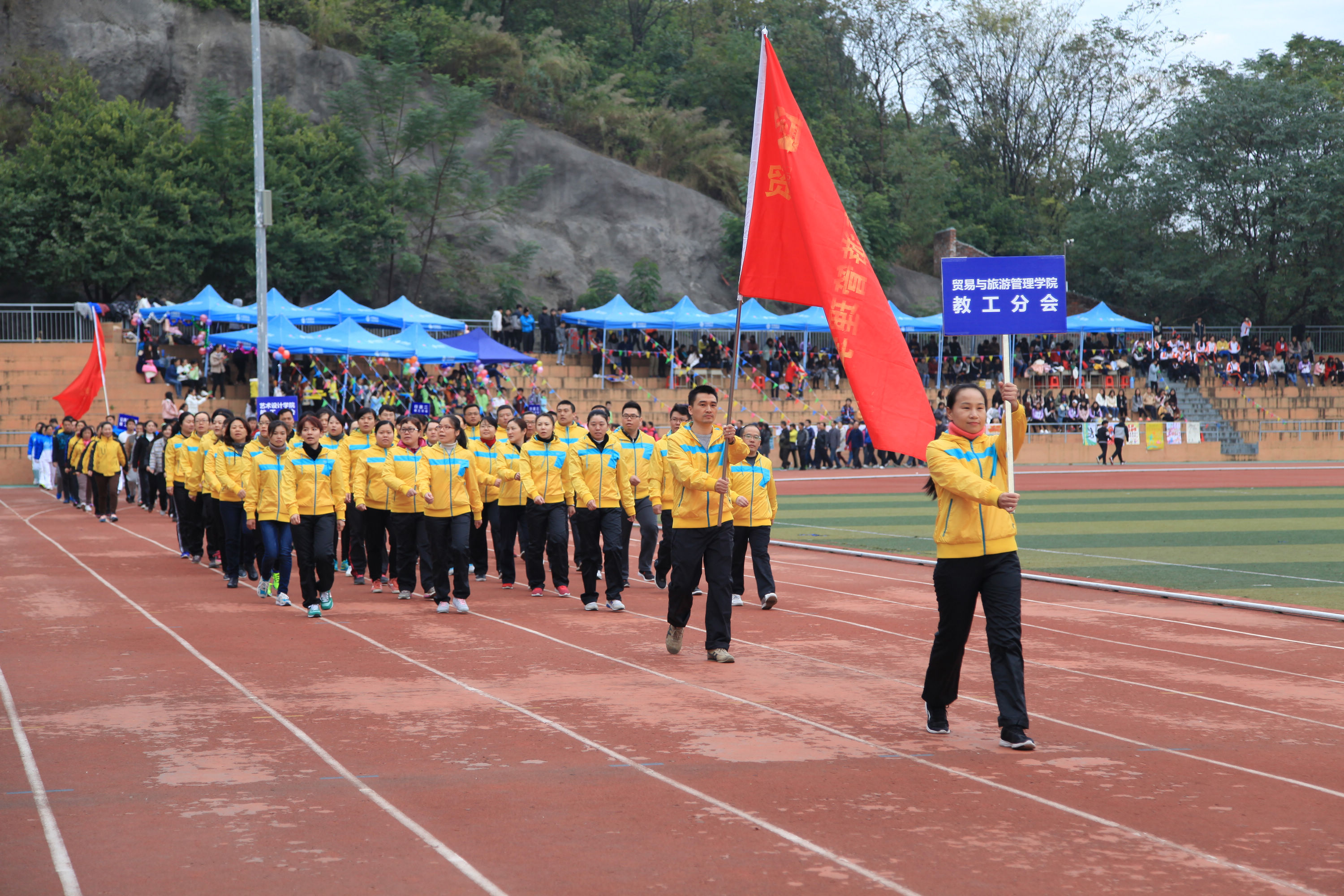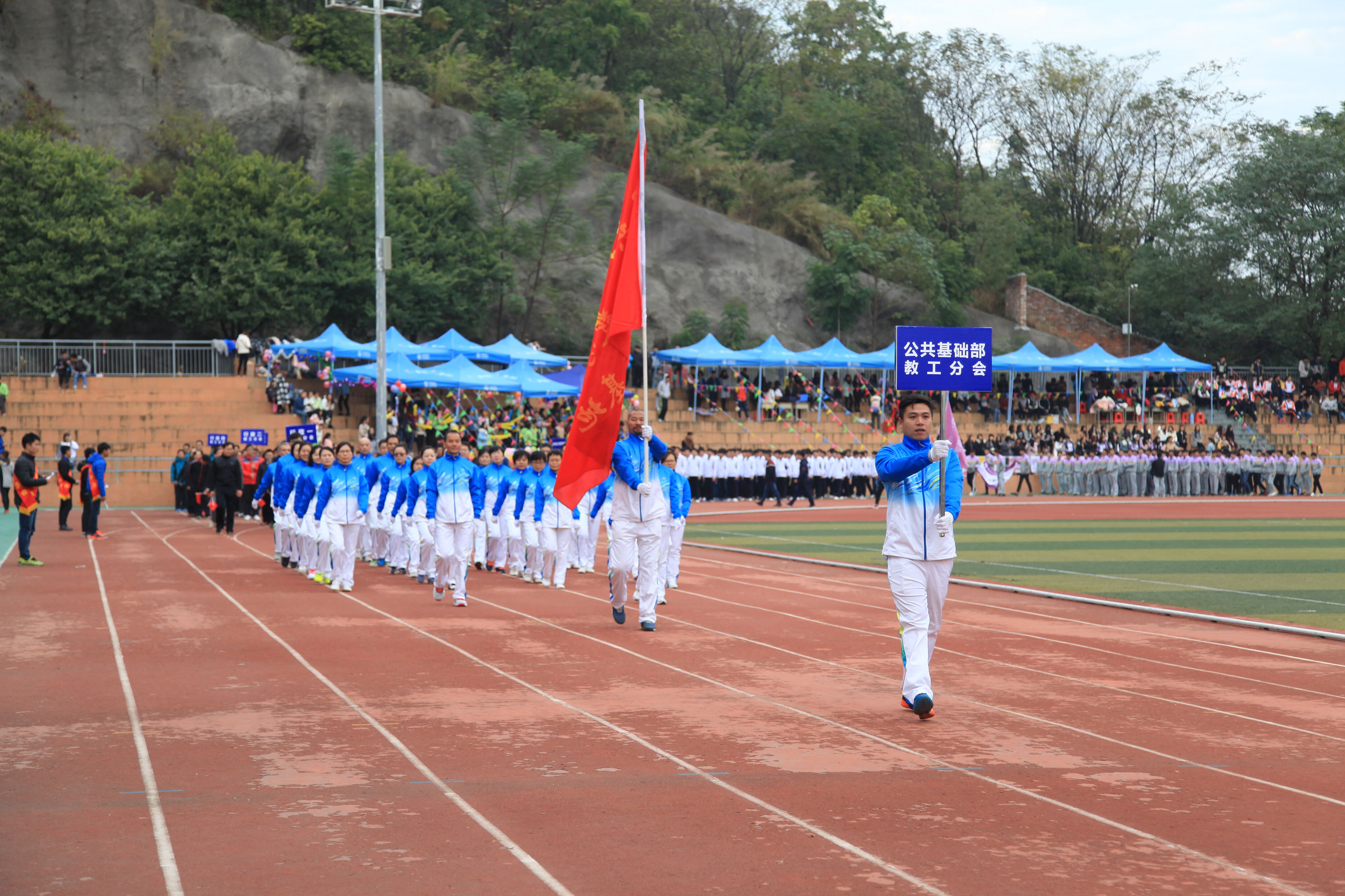 绿茵场上,国旗队、校旗队、运动会会旗队、裁判员队伍以及教职工方块队、各二级学院学生代表方块队在激昂的《运动员进行曲》声中依次从主席台前经过,整齐而有序的入场拉开了本届运动会的序幕。