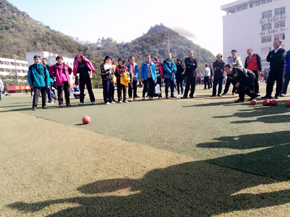看,那边观众们围成一小圈、一小圈,时不时传来阵阵笑声,原来老师们正在进行保龄球比赛。那弯着身子的预备动作散发出对胜利的渴望,球在手中摩擦着瞄准前方;“加油”,“加油”的呐喊此起彼伏。预备,开始!球从掌心滑落,“嘣”一声全倒迎来如潮的掌声。这一刻,没有领导、没有同事、没有老师、没有学生,像极了大朋友教小朋友做游戏的场景,场面非常温馨。