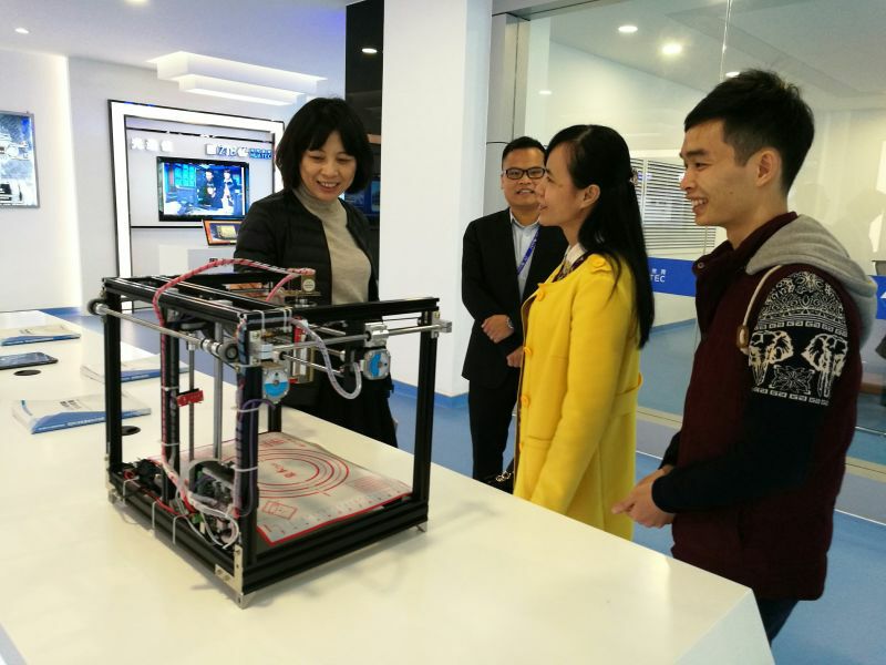 调研会前,鞠副校长和公共基础部、思政部主任陈芳陪同客人参观了我?;缡笛祷亍⑾冉圃旃こ?、中兴通讯信息学院ICT行业创新基地及学生服务中心。