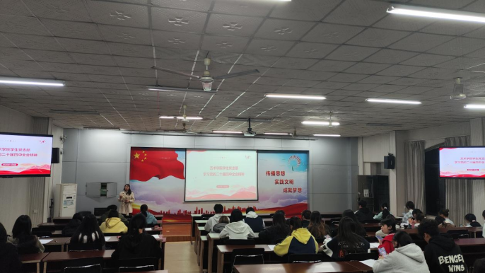 新闻网消息(文/艺术学院 邓丽 图/艺术学院 刘茜茜为推动党的二十届四中全会精神在青年群体中落地生根,加强入党积极分子思想教育,筑牢理想信念根基,11月4日,艺术学院分党校在社湾校区思贤楼101教室举办入党积极分子培训班第三堂主题党课,由学院学生党支部书记邓丽主讲,全体入党积极分子参加学习。