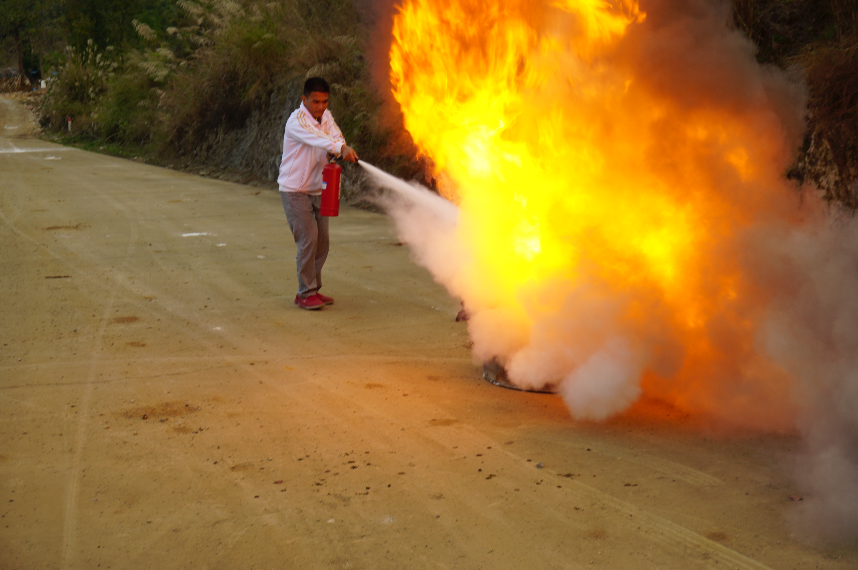学生使用灭火器进行灭火演练