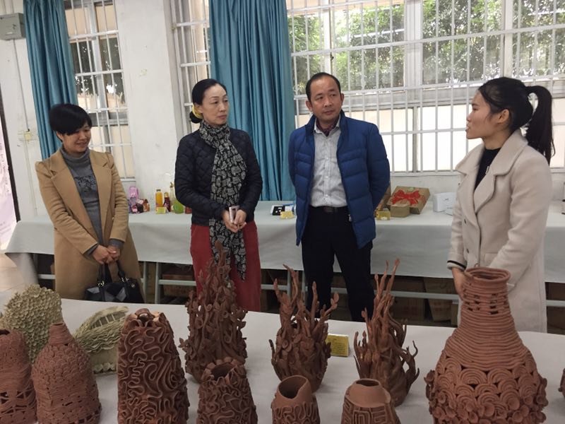 石校长和鞠副校长参观学生陶艺作品展览