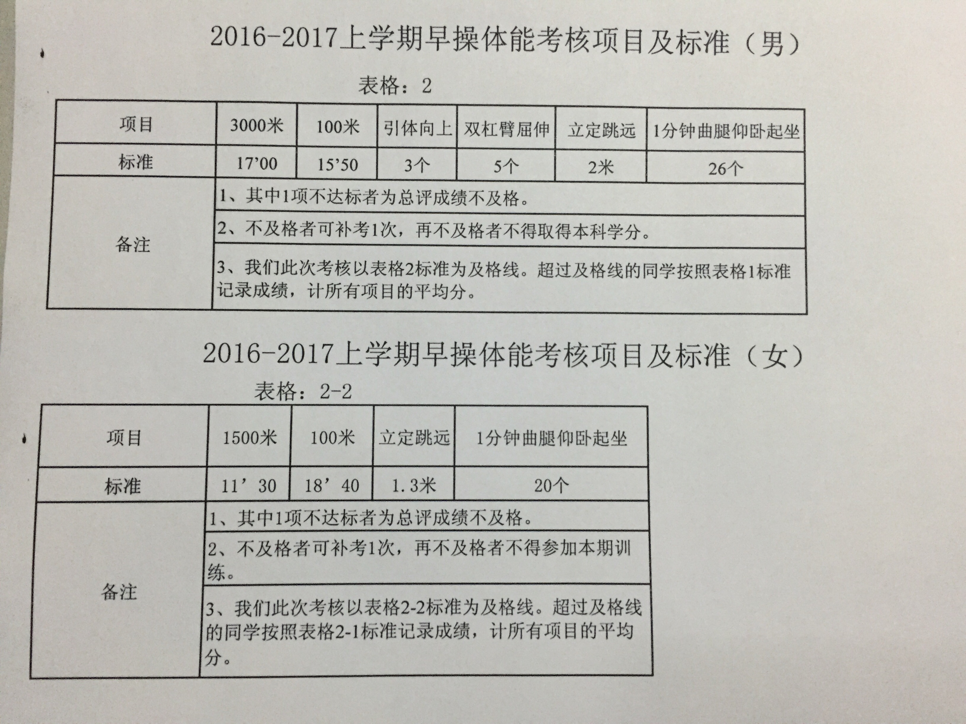 体能考核项目及标准