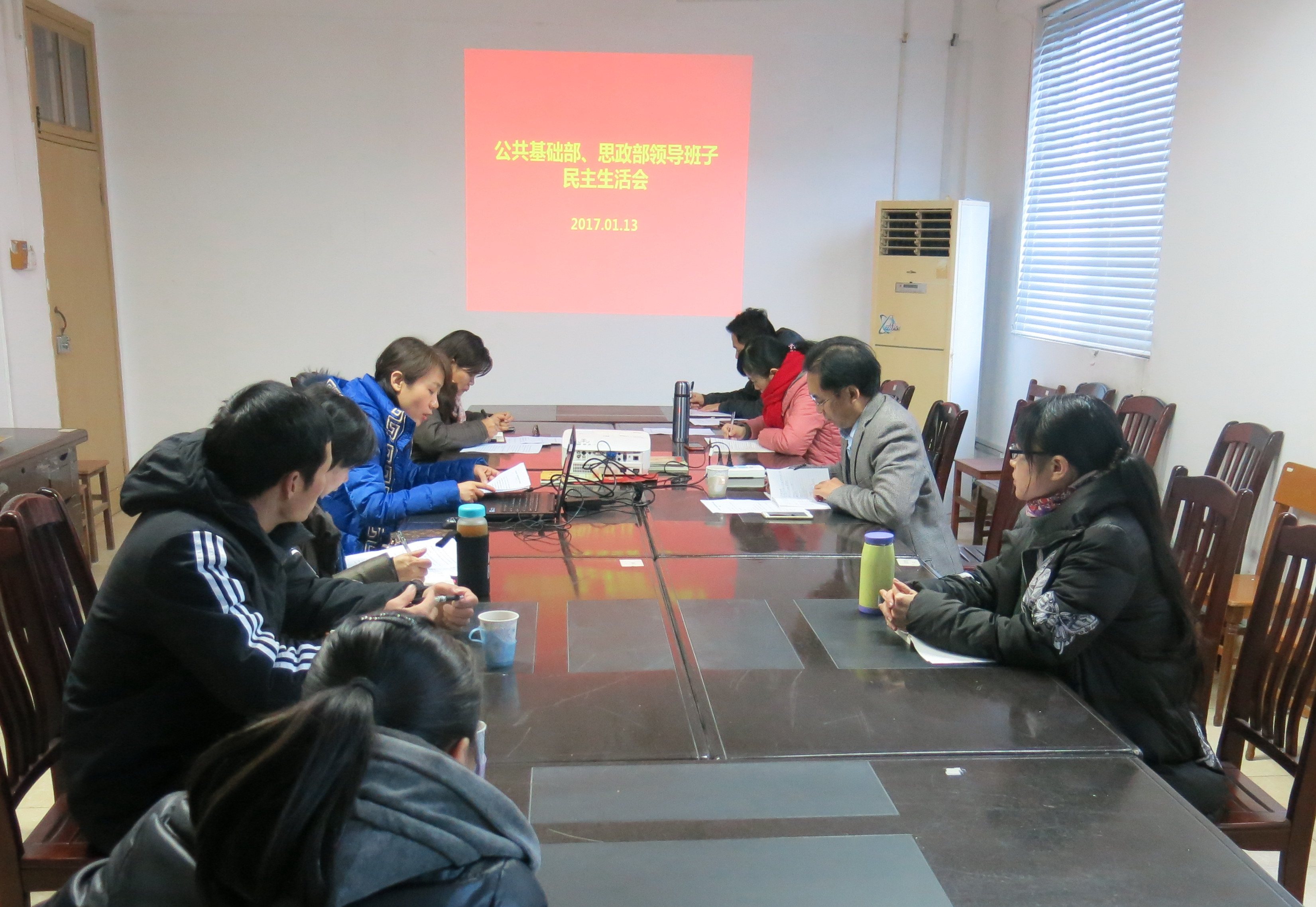 新闻网消息(文/公共基础部 黄志卫 图/公共基础部 陈清)2017年1月13日上午,按照学校党委部署,公共基础部、思政部(以下简称公共基础部)领导班子2016年度民主生活会在海纳楼502会议室召开。学校党委副书记阳旭到会督查指导,公共基础部党总支委员、各支部书记出席,党总支组织委员黄志卫主持会议。
