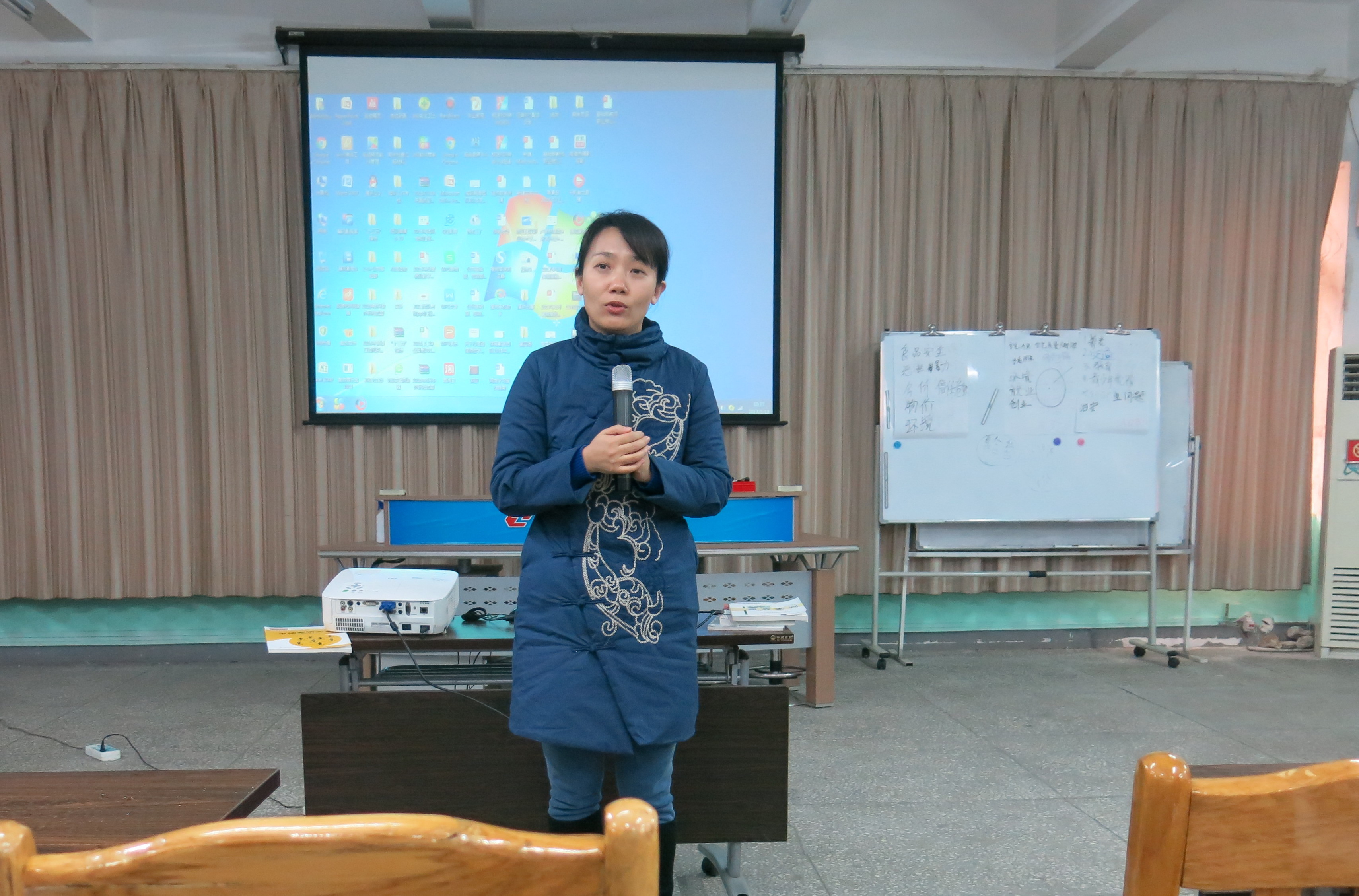 “中国创新创业教育形势”专题由就业与创业教学团队负责人许明教授主讲。她分析了我国及我校大学生创新创业活动的现状,介绍了当前我国大学创新创业教育发展的概况以及大学生创新创业中存在的问题,分析了SIYB项目与KAB项目的区别,并从人才培养方案制定、创新创业课程体系的构建等方面,分享了自己的经验。