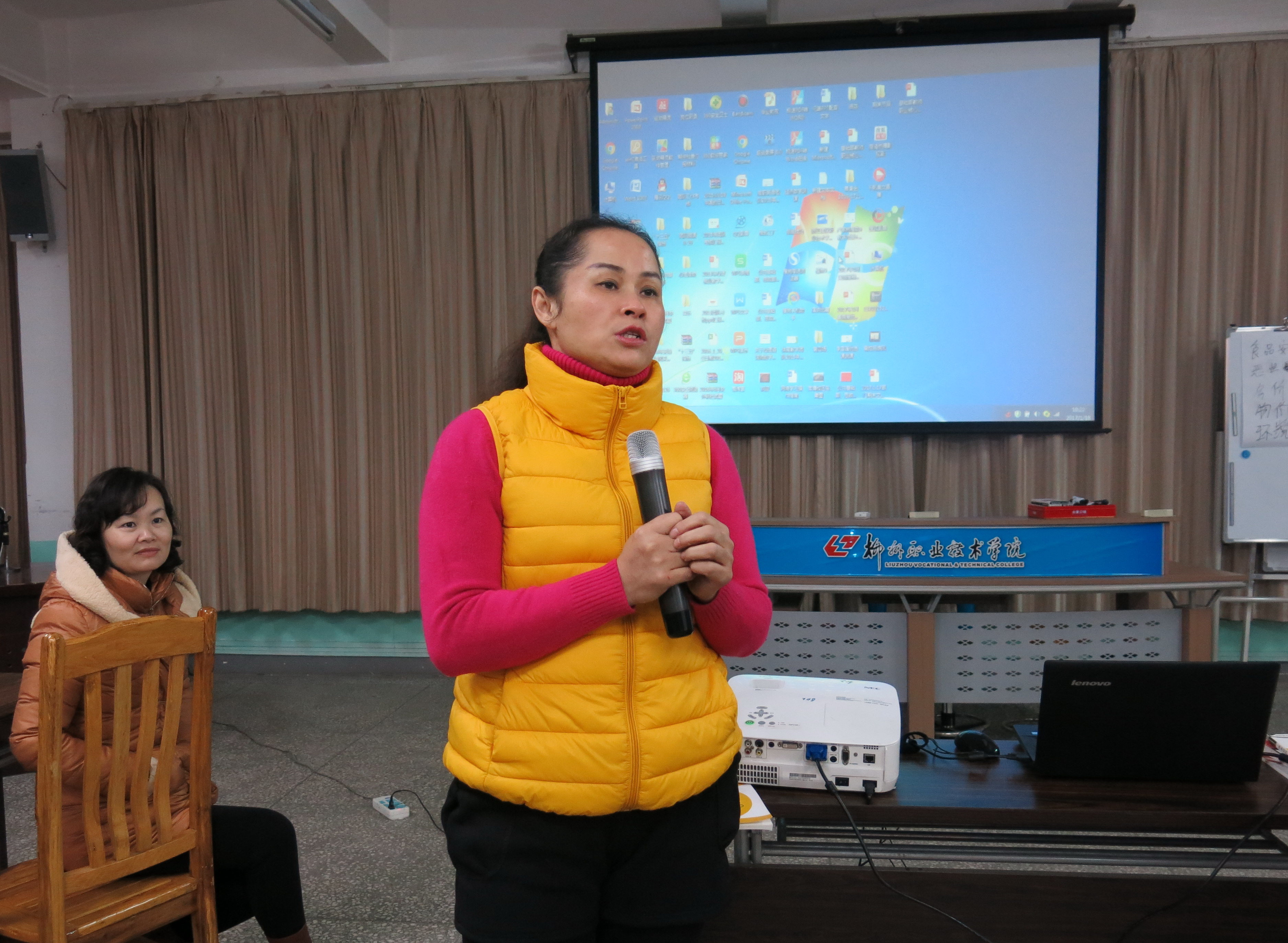 高职数学系列课程教学团队负责人韦碧鹏老师主讲的专题为“大学生SYB培训收获分享”。他从成人学习原理、参与性培训方法等方面介绍了大学生SYB培训教学的方法,旨在让教师们在教学中借鉴和运用其中的方法,促进有效教学。