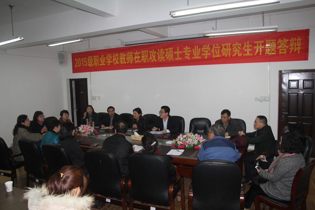 新闻网消息(文、图/党委宣传部 )近日,广西师范大学职业技术师范学院举办2015级职业学校教师在职攻读硕士专业学位研究生开题答辩。我校教师教育学教授董绿英,作为广西师大兼职硕士生导师,参加了教育硕士教育管理方向的研究生开题答辩指导工作。参加答辩的研究生共68名,董老师所在小组共15名研究生,他们所从事的岗位主要为高职院校及中等职业学校的教师与管理人员,研究方向为教育管理。