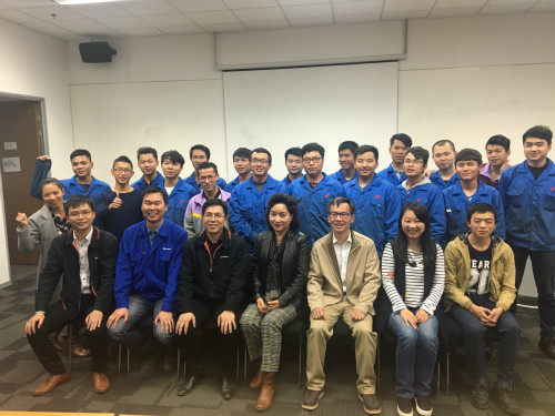 与柳工领导及2015级工程机械运用与维护专业第一批顶岗实习学生合影留念