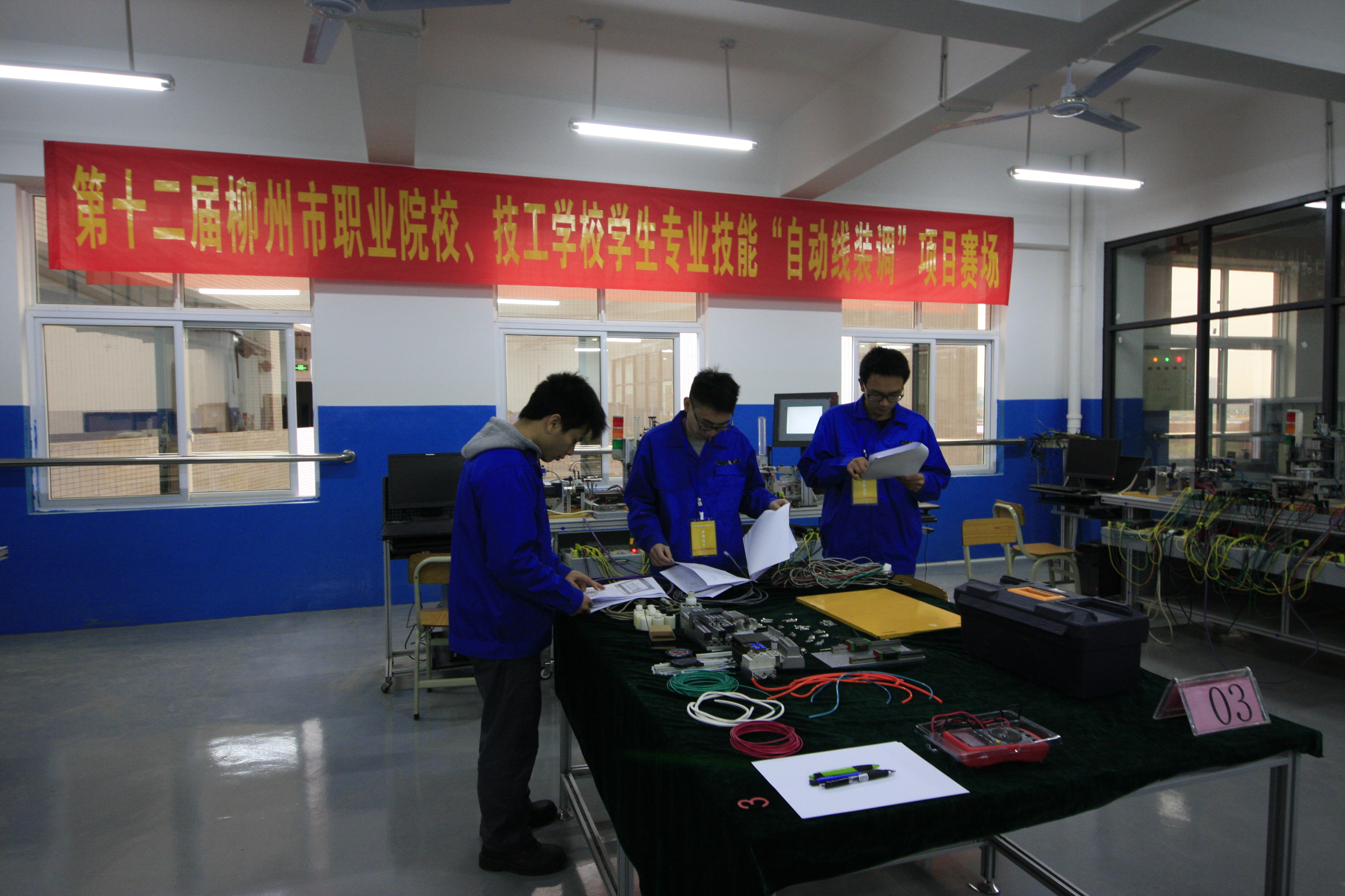 新闻网消息(文/机电工程学院 田文靖 图/党委宣传部 朱敬民、学院电视台)2017年3月11日,柳州市职业院校学生专业技能比赛“数控机床装调与技术改造”、“自动线安装与调试”两个赛项,在我校官塘校区T3教学楼A208、A308两个实训教室举行。来自柳州职业技术学院、柳州铁道职业技术学院、柳州城市职业学院的15名选手参加了该赛项的技能竞技。
