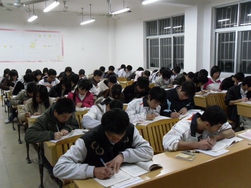 2009年12月14日晚,电子电气工程系2009年入党积极分子业余党校党课结业考试在东校区第5教学楼104教室举行,共有55名入党积极分子参加考试。由系辅导员骆琴、李婵老师及两名负责学生党建工作的罗小文、卓雨柔同学共同进行监考。