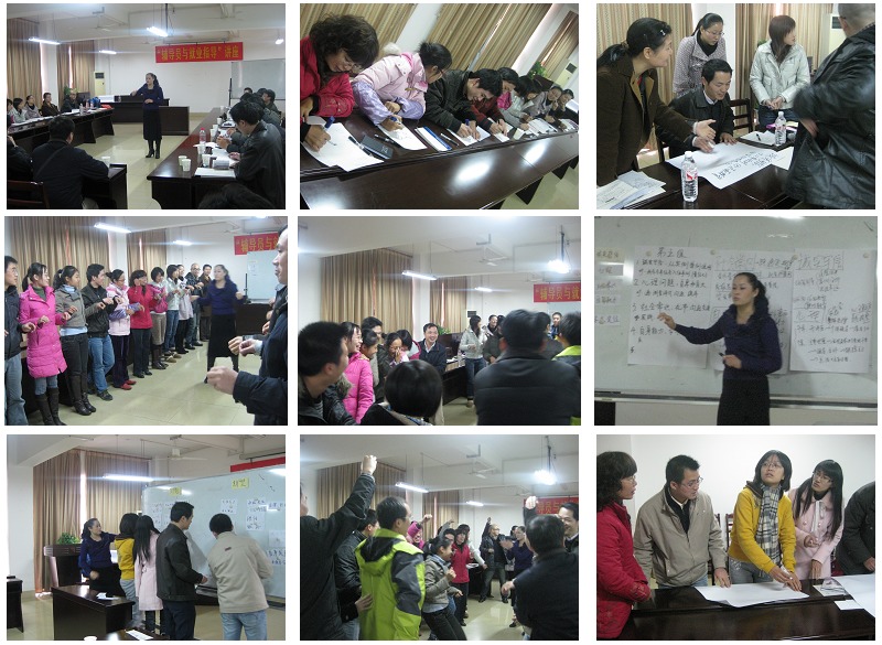 许明副教授紧紧把握情绪线,在讲座进行一半时,及时利用一个分组的游戏调动现场的气氛,既达到分组的目的,也让整个会场重新恢复活力。继而许明副教授又运用讨论分享总结的方式,让参加培训的老师对归纳出的四个问题进行讨论。进过游戏的醒脑,大家又精神百倍地投入了讨论和分享。