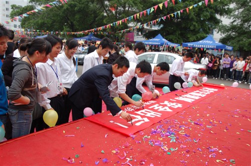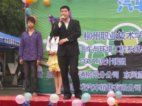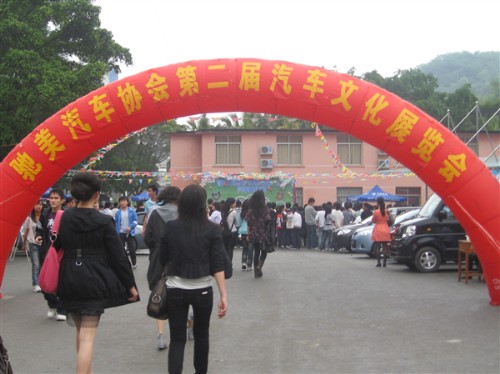 本届汽车文化展由驰美汽车协会主办,为校园社团文化系列活动之一。此次车展吸引了柳州华明销售公司(一汽海马汽车)、柳州延龙汽车销售有限公司、柳州市翔远汽车有限公司、柳州鸿润经济贸易有限公司、东风雪铁龙华宏4S店等汽车经销商参展?;疃戳酥诙喟嫡咔袄垂壅埂O殖』乖黾恿嘶滴璞硌?、儿童舞蹈表演、武术表演以及“遵守交通规则,安全出行”签名活动、车模走秀、模拟营销大赛等多种节目,现场人员热情高涨,尤其现场展出的海南马自达、比亚迪、本田、三菱等多种车型,使他们大饱眼福。