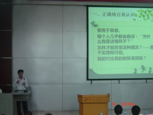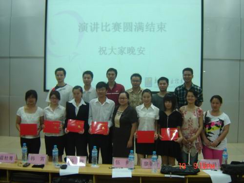 为了优化校园文化、丰富学生精神生活、促进学生综合素质全面和谐发展。2010年5月19日晚,由院团委主办,经济管理系团总支承办的柳州职业技术学院首届“分享读书乐趣”演讲比赛在博闻楼110教室举行。学院团委书记杨琳、各系团总支书记以及各系学生代表出席了此次活动。