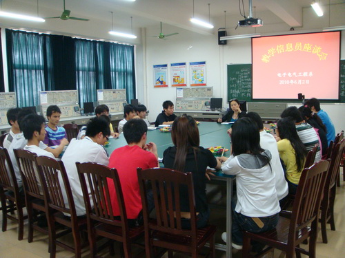 为了更好地落实科学发展观,更好地开展系部教学工作,电子电气工程系于2010年6月2日下午在竞择楼408教室召开“电子电气工程系教学信息员”座谈会,会议由电子电气工程系孔轶艳老师主持。参加座谈会的有副主任蒋治宏、教学秘书杨艳玲老师、廖郡老师及08、09级各班教学信息员。