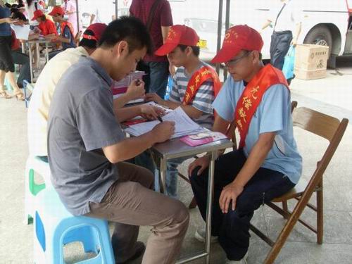 活动当天,随处可见“献血有益健康,救人功德无量”、“伸出你的臂膀,托起生命的希望”等标语!五顶简易帐篷下,我院信息系10名志愿者们耐心协助红十字会中心血站工作人员,给准备前去献血的市民讲解义务献血注意事项,帮助讲解、填写献血登记表。还有部分志愿者在献血车上负责组织即将进行献血的市民,维持中心血站献血活动的秩序,搀扶献过血的同学以免出现安全问题,整个活动持续了一天。