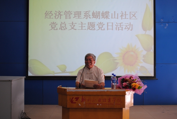 2010年7月8日下午,经济管理系党总支与蝴蝶山社区党总支在我院开展主题党日活动,邀请参加过抗美援朝战争的志愿军老战士徐文理同志做题为“红色之旅”的爱国主义讲座。经济管理系团委杨小浒书记、蝴蝶山社区党总支书记莫翔芬 、社区党总支副书记杨图海、广西现代路桥公司柳州分公司徐东雄经理、经济管理系学生党支部书记李嫦、陈晓萍,以及部分党员教师代表和蝴蝶山社区党员代表和学生党员、入党积极份子参加本次活动。