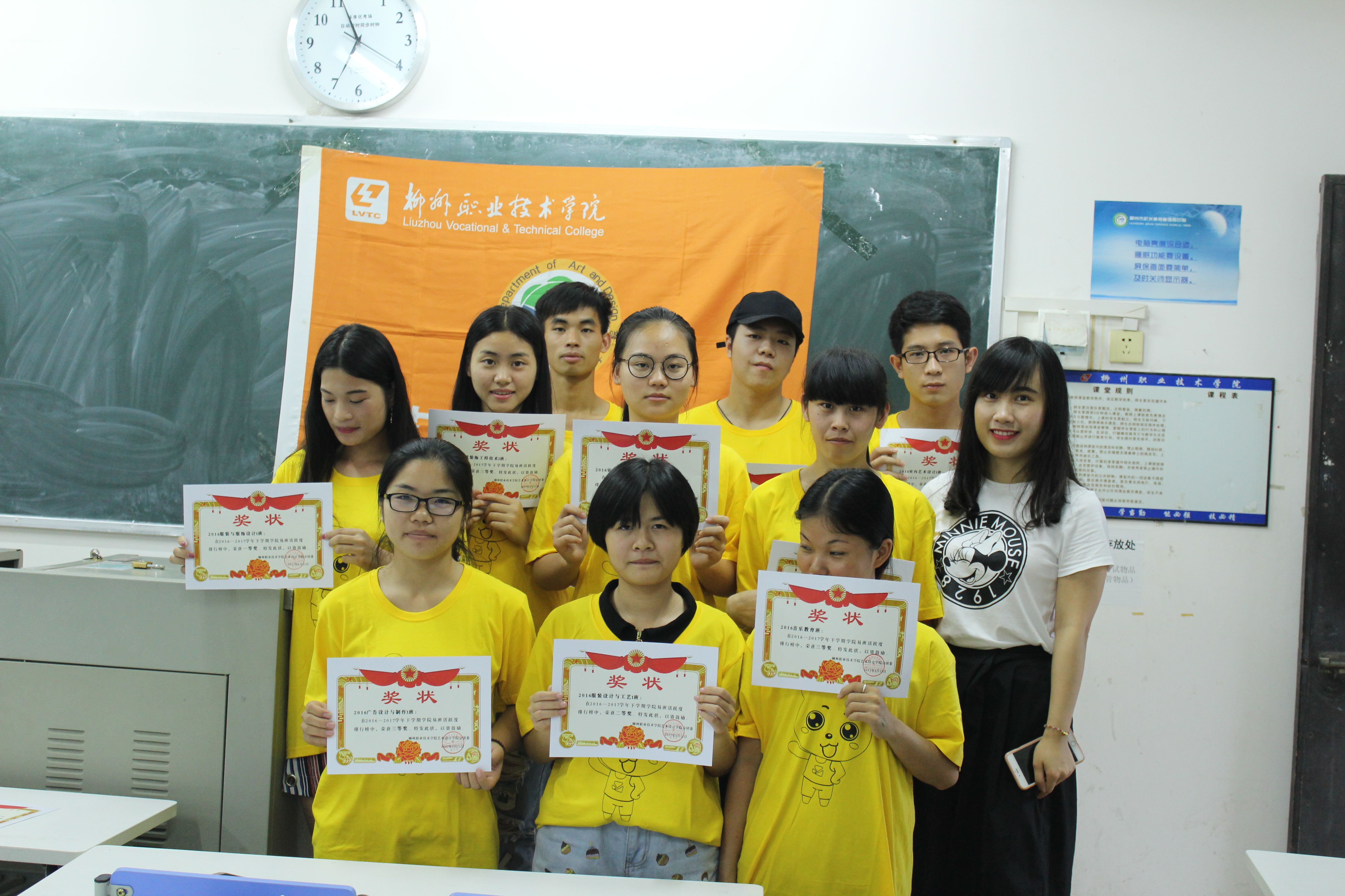 主持人宣布本次表彰大会获奖名单:2016建筑装饰与工程技术1班、2016服装与服饰设计1班荣获一等奖;二等奖则由2016室内艺术设计1班、2016服装设计与工艺1班、2016室内艺术设计2班三个班级获得;2016广告设计与制作1班、2016广告设计与制作2班等7个班级获得三等奖。陈硕娇、卢宝炜、 冯华珍三位同学获得优秀易班长称号。覃晓晨老师为获奖的各易班长及班级代表颁发证书和奖品。之后,优秀易班长纷纷上台分享了自己的心得、一年来的收获和努力。