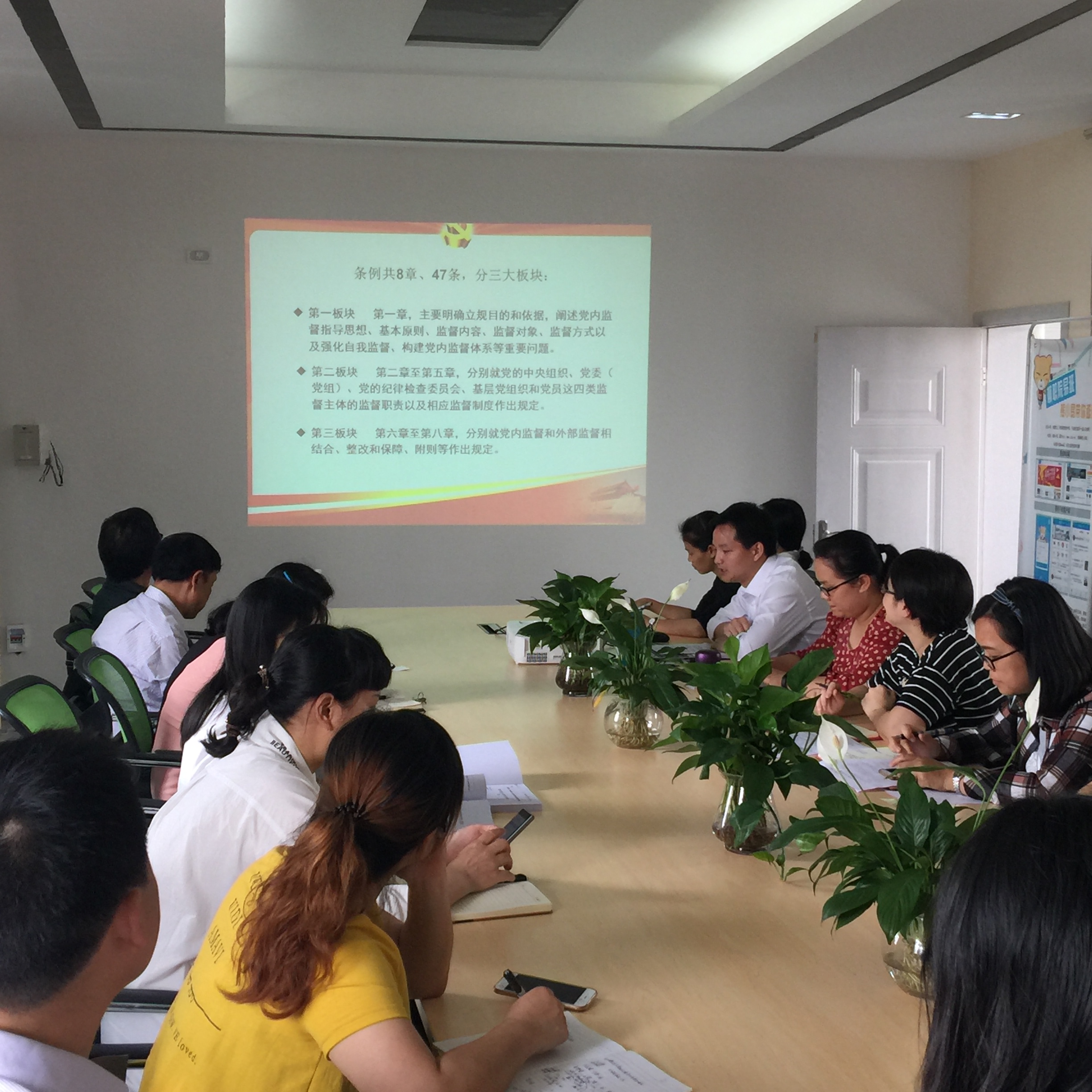 新闻网消息(文、图/教务处 唐翠英)为进一步提升支部党员的理论水平和政治觉悟,2017年5月12日,直属二支部组织全体党员深入学习了《中国共产党党内监督条例》(简称《条例》),并就《条例》进行了深入研讨。