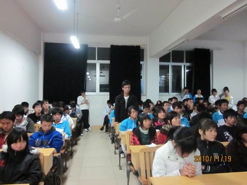 为了营造良好的学习氛围和环境,明确学习目标,帮助2010级新同学尽快适应大学学习生活,2010年11月19日晚,信息工程系在搏闻楼311教室举办“学习经验交流会”。本次交流会邀请了2008级软件技术专业黄成林、黎倩雪、陈庆峰、王道真以及网络技术专业何伯罕等5位优秀学生,给2010级同学做了一场别开生面的学习交流活动。交流会还吸引了2009级部分同学前往聆听。交流会由辅导员廖美暖老师主持。
