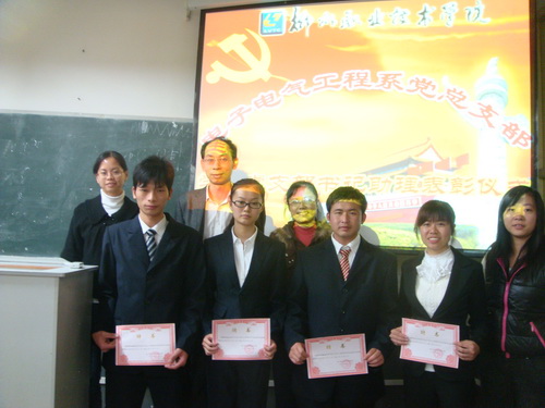 为了加强入党积极分子对党的认识,使入党积极分子坚定理想信念,不断提高思想政治觉悟,努力学习,积极工作,为争取早日加入中国共产党创造条件,2010年12月6日晚,电子电气工程系2010年第二期学生党课在学院文华楼202教室开班。电子电气工程系党总支书记伍柳、直属机关五支部韩国云书记、系学生党支部书记潘庆老师、组织委员骆琴老师、宣传委员李婵老师出席开班典礼。