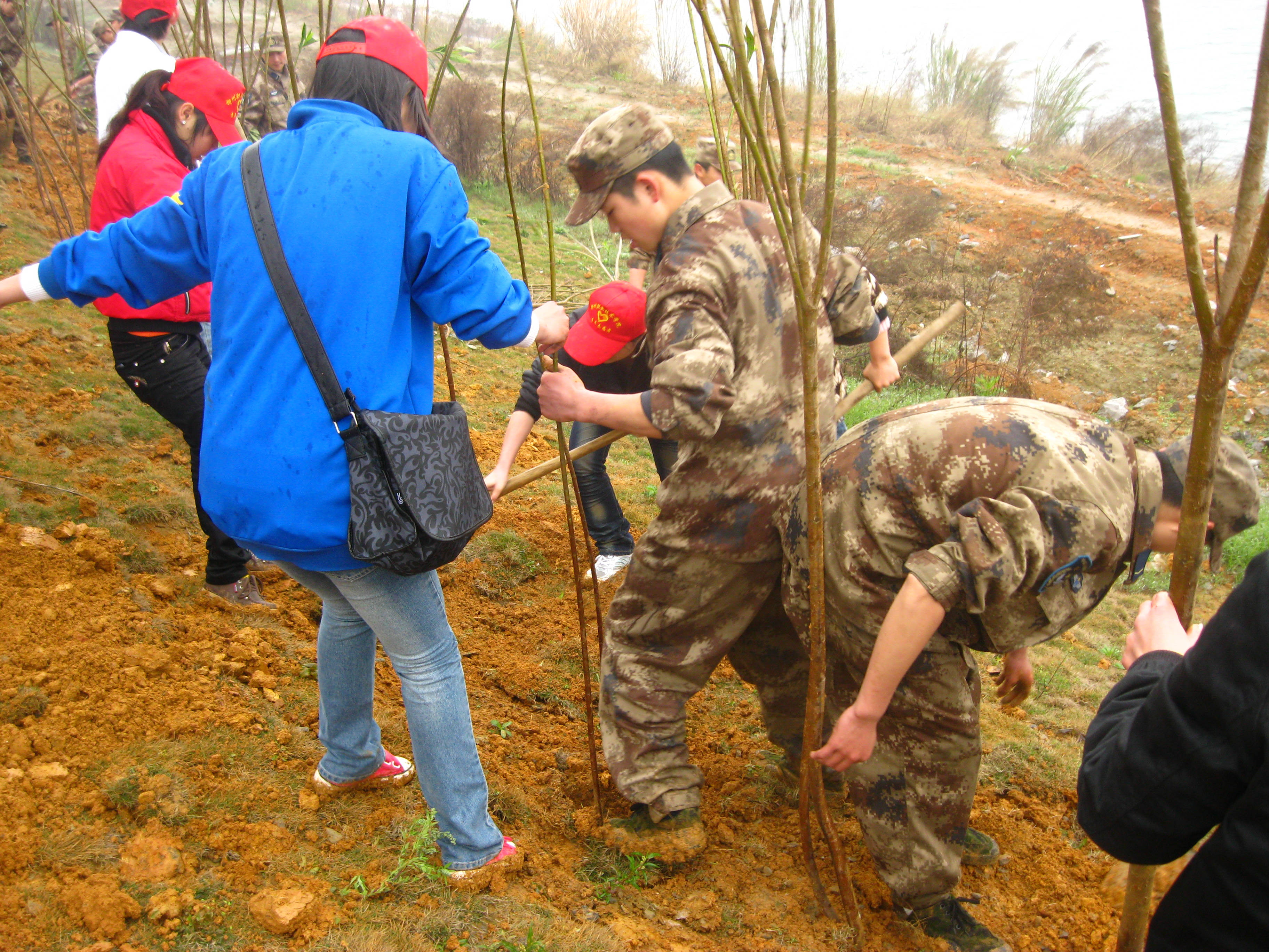 植树造林,构建和谐家乡,是每个大学生应尽的义务。11日清晨,细雨蒙蒙,柔风轻拂,空气中透着清新的味道。8点整,我院青年志愿者组成的植树队伍浩浩荡荡来到了植树地点——静兰桥西头北面柳江河畔。