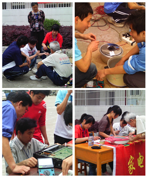 2011年4月15日下午,电子电气工程系学生党支部组织2009级入党积极分子和家电维修部协会在学院行健楼前举行“家电义务维修——真情奉献”活动。