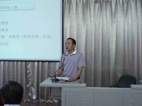 分管教学工作的李革老师阐述了2011年秋学期教学工作的基本思路。在会上,他对开学初的工作提出了要求,对新学期教学常规、教改工作、第二课堂活动、期初教学研讨工作进行了总体部署。他指出,在新的学期里,教学工作的重点一是要在常规教学工作加强监控指导;二是第二课堂活动要以促进学生能力的提高为出发点,讲求活动实效;三是在教改中要加强与专业结合的主动性,为专业服务。特别强调了全体教师在教学工作中要切实贯彻“五个一工程”要求,即“将示范建设的优秀成果通过每一位老师,落实到每一门课程、每一堂课、每一个班级、使每一位学生真正受益”,以提高课堂教学效率为重点,全员参与、精心设计,打造有亮点、有特色、高效率的典型课堂,促进课堂教学效率和教学质量的全面提升。(文、图/黄志卫)