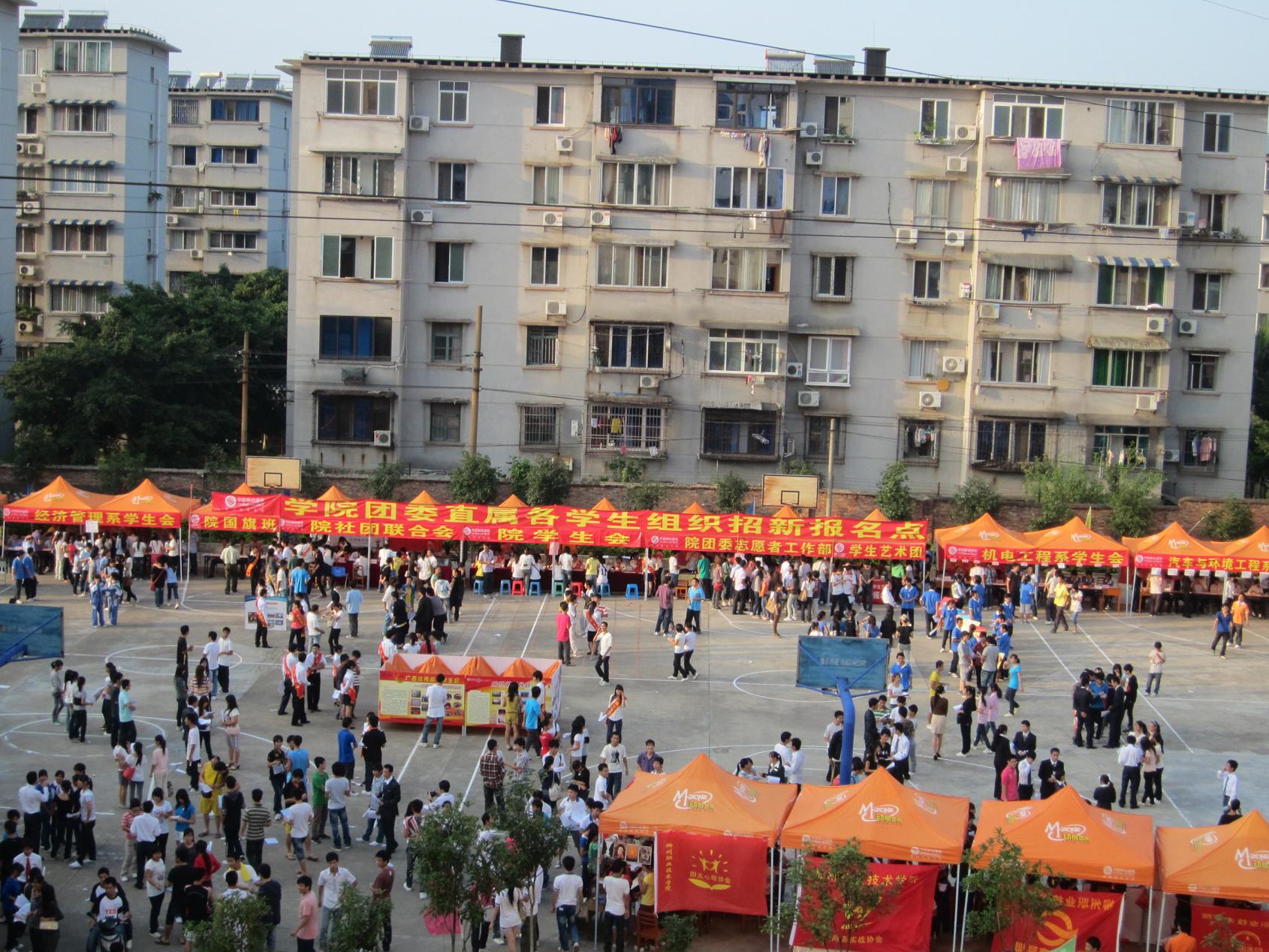伴随新生的学习生活全面展开,我院各学生会、学生社团开启新一学年的招新工作,使新生了解并走进我院各类学生组织,在工作及活动中做到“四会”,即“会做人、会学习、会做事、会交流”。2011年10月14日下午,院学生会、各系学生会、院社团联合会以及各社团在学院本部篮球场进行了招新报名工作。