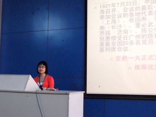 龙思珍老师对全体2011级新生积极向党组织靠拢的决心给予了肯定和赞扬。她介绍了学院党委、系部党总支以及学生党支部概况,详细介绍了该系党总支的发展历史和所取得的成绩;介绍了中国共产党的历史、党的指导思想、党的性质、党的根本宗旨等;解析了发展党员的程序及党员的权利和义务等;向同学们阐述了做好一名学生党员的重要意义。