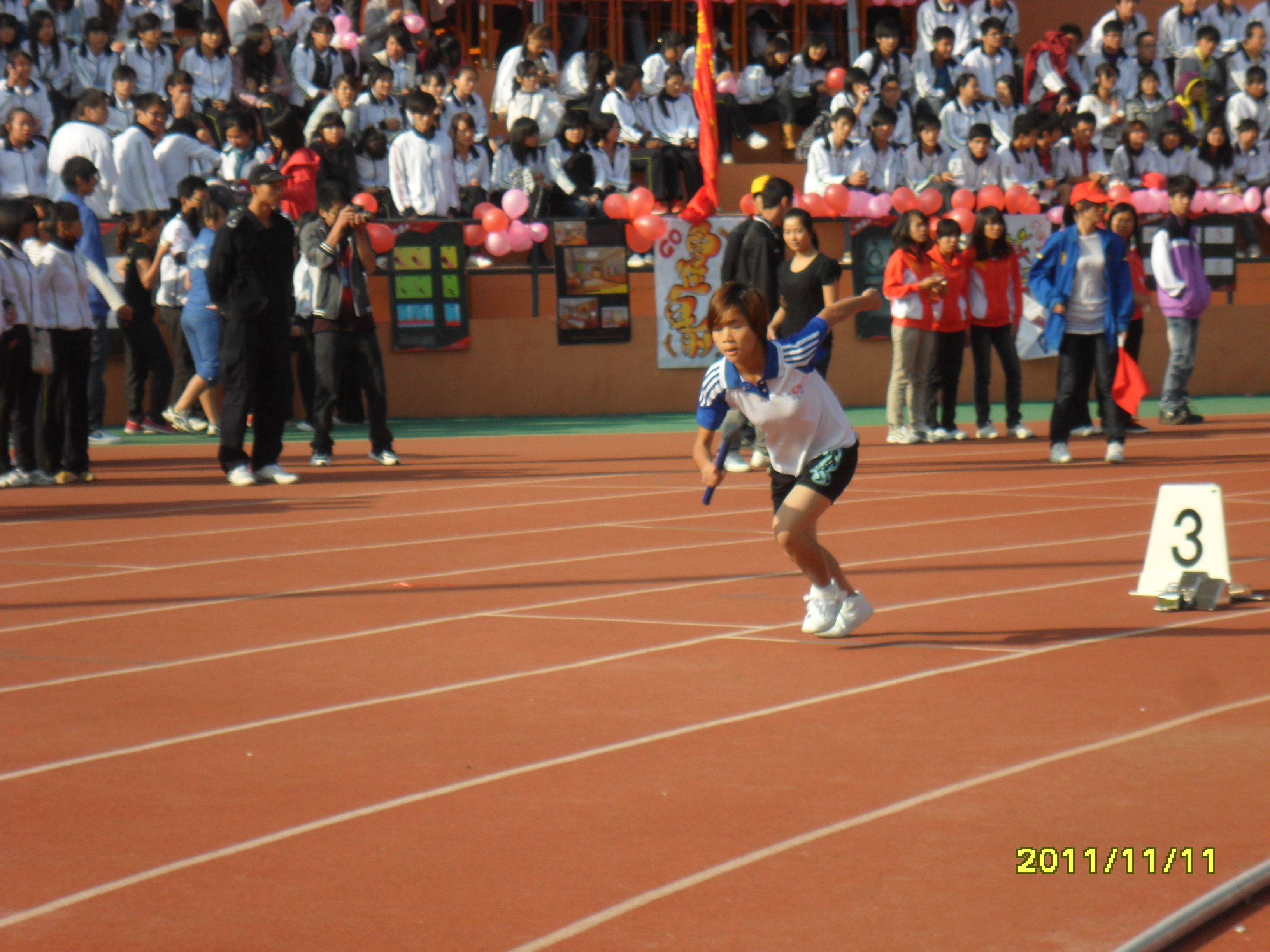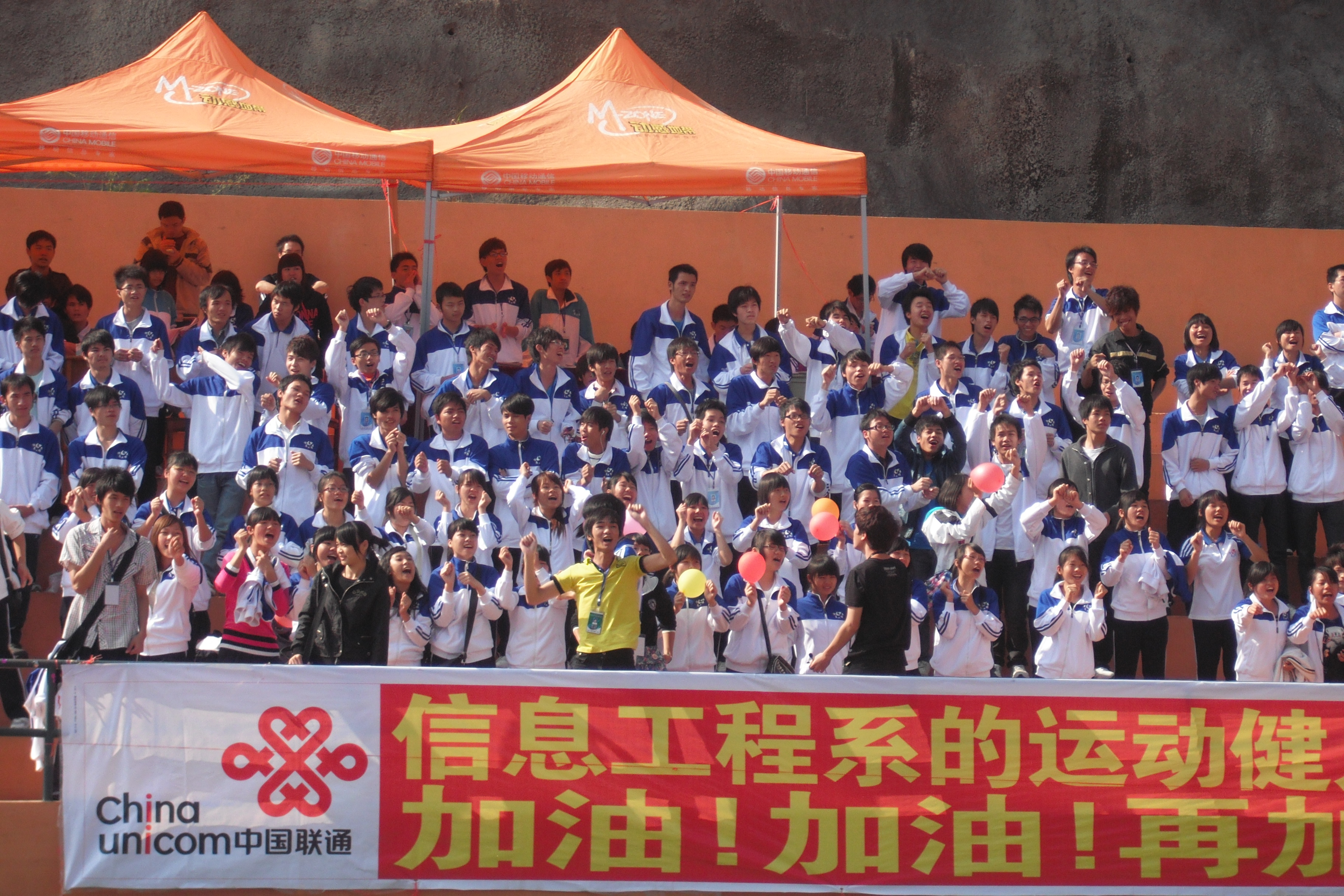 该系大本营里的党员服务专区是本届运动会上的一道独特的风景线,他们默默地付出,给运动员们提供周到细致的服务。在激动人心的时刻,他们引导拉拉队一起为运动健儿们加油、呐喊、助威,无形中给健儿们增添了无穷的力量和战胜困难的信心和勇气。该系的青年志愿者分队也穿梭在运动场内外,清理每一个角落的垃圾,为营造整洁干净的运动场地提供了有力的保障。他们的付出,为该系在运动会上取得精神文明和运动成绩的双丰收打下了坚实的基础。