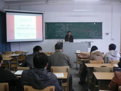 本期培训由思政部姜献生主任主讲,培训主题是《2011-2012中国经济形势走向与大学生就业形势》。姜献生主任给大家介绍了我国从2011年以来国内经济形势的大致走向,并分析了2012年我国的经济发展的趋势。培训中,姜献生主任建议教师们在上课时要从学生的实际出发,把国家的经济发展走向与各专业学生的就业、职业发展联系起来,力求使《形势与政策》课成为学生对国家形势的关心和对自身发展的关心有机结合点。