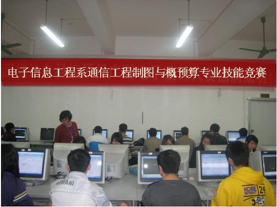 为了加强通信技术专业毕业生在通信工程制图与概预算方面的专业能力,电子信息工程系通信技术专业团队结合课程和企业需求,通过一个多月的筹备,于2012年4月8日晚开展了“通信工程制图与概预算”专业技能竞赛。为保证这次比赛的更符合企业的实际需要,该系邀请到了广西通信工程建设有限公司的专业设计员蒙达先生,对这次比赛的题目进行审核和指导,并参与了学生比赛作品的审阅。