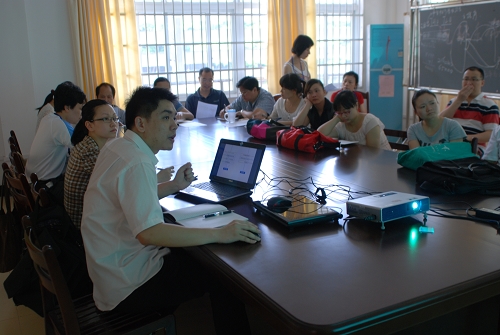2012年5月4日下午,现代教育技术中心副主任曾韬率领中心相关技术人员到食品与环境工程系开展多媒体技术推广会。食品与环境工程系副主任黄宁及部分教师参加了会议?;嵋橛稍焊敝魅沃鞒帧?br> 会议上,现代教育技术中心林聪老师介绍了多媒体技术推广的方案。首先介绍的是现代教育技术中心即将举办的培训的相关内容,分别有PowerPoint2010技巧、视频资源获取及处理技术、教学办公相关软件应用、网络课程建设。会上,现代教育技术中心表示可以为教师提供专业视频资源制作、三维仿真(虚拟)技术、网站制作等技术支持。