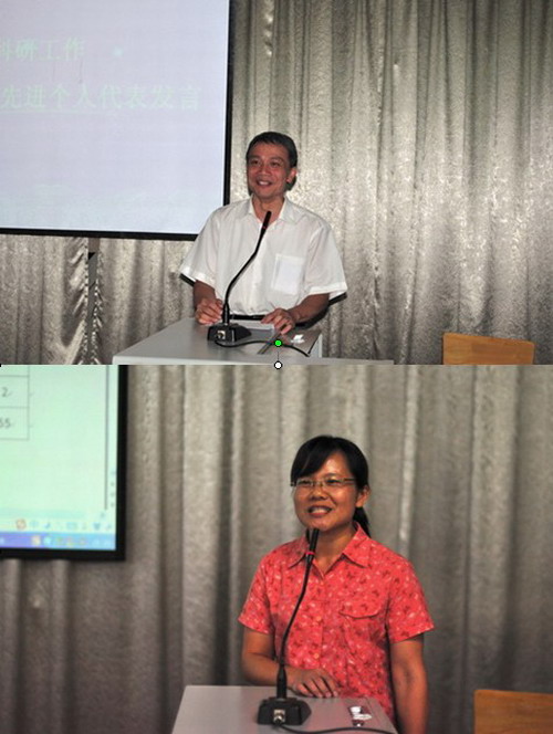 随后,优秀科研团队代表、先进科研工作者代表、优秀科研导师代表、优秀徒弟代表先后上台发言,他们分别介绍了各自教学团队和个人开展科研活动的心得和体会,与大家分享科研的经验,与会教师普遍感到受益匪浅。