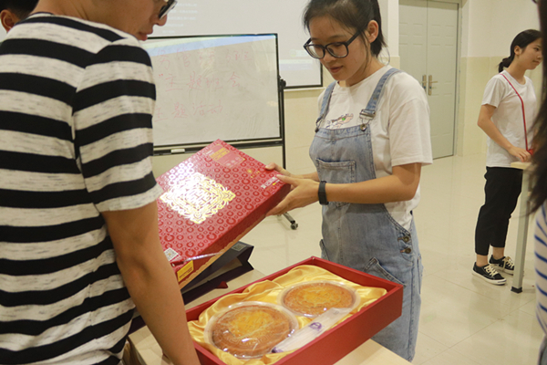 活动三:“家”的情结归属活动。有的班级在中秋期间开展了“相聚中秋,快乐无穷”的主题班会,在各宿舍表演结束之后,欢聚在一起吃月饼。通过本次活动同学们不仅增加了中秋的喜悦,还增加了对柳职“家”的感觉。