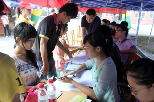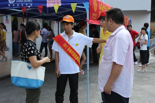 上午7点半开始,陆陆续续开始有新生报到,该系新生接待工作正式开始。在贸易与旅游管理系新生接待大本营的每个角落都可以看到身披“绶带”的志愿者们忙碌着带领新生办理入学手续,他们以优质的服务迎接新生,耐心地与家长沟通,为家长及时安排座位休息,领着2012级新生穿梭于打印报到表处、辅导员注册处、一卡通领取处及军训服办理处等新生办理入学手续的各个地点。该系志愿者的热情、细致、周到、规范、有序的接待工作,赢得了新生及家长的一致好评,充分展示贸易与旅游管理系志愿者良好的素质。