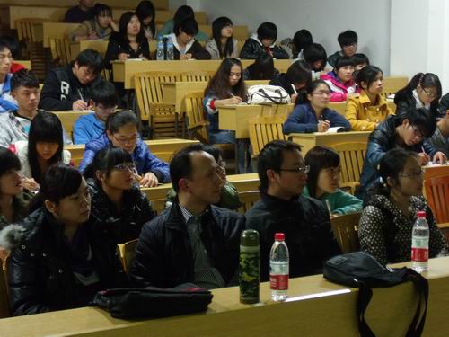 12月8日晚,柳州桂中海迅物流股份有限公司曾锴经理、韦炜工程师应邀在博文楼110多媒体教室给2012级物流管理专业4个新生班级的同学作了“汽车物流人才需求”的专题讲座,企业专家在讲座中介绍了柳州桂中海迅物流股份有限公司配送中心的情况,结合配送流程介绍了汽车零部件配送中心工作内容及岗位设置与岗位要求,分析了物流人才需求,并就同学们关心的问题进行了互动探讨。通过此次2012级物流管理专业入门教育的系列活动,走出去到现场参观,请专家进学校来作讲座,加深了新同学对本专业的初步认识和专业技术实际应用情况,增加了同学们对知识渴望与技能学习的兴趣。(文/刘晓芳 图/王浩澂)