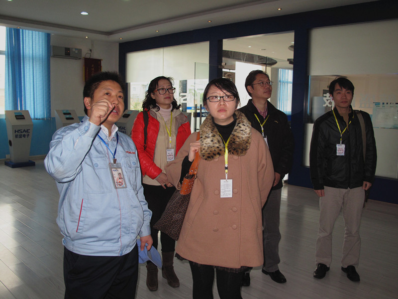我院一行参观了航盛生产电子仪表仪器的二楼车间和生产汽车音响的三楼车间,所见都是工人们在认真进行生产操作的热闹场面,偶尔一两声汽车音响或收音机的音乐传进你的耳鼓,给来宾带来别样的感受。在3楼,刘启斌指着车间里正待使用的机器说,共建该实训基地以后,企业所有相关岗位都可以开放给我院师生使用,这里可以容纳学院应用电子技术、电子信息工程技术等电子信息类专业每批次50名学生实习,一次时长两个月,第一个月进行安全及技术培训,第二个月上岗实际操作。如按“师带徒”形式进行顶岗实习,则每批次可容纳100名学生。在调研过程中,电子信息工程系的领导还就下一阶段的“订单班”课程教学、国家级高职师资培训、产品研发等工作进行了探讨与研究。